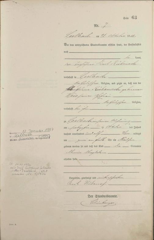 Geburtsregister 1911