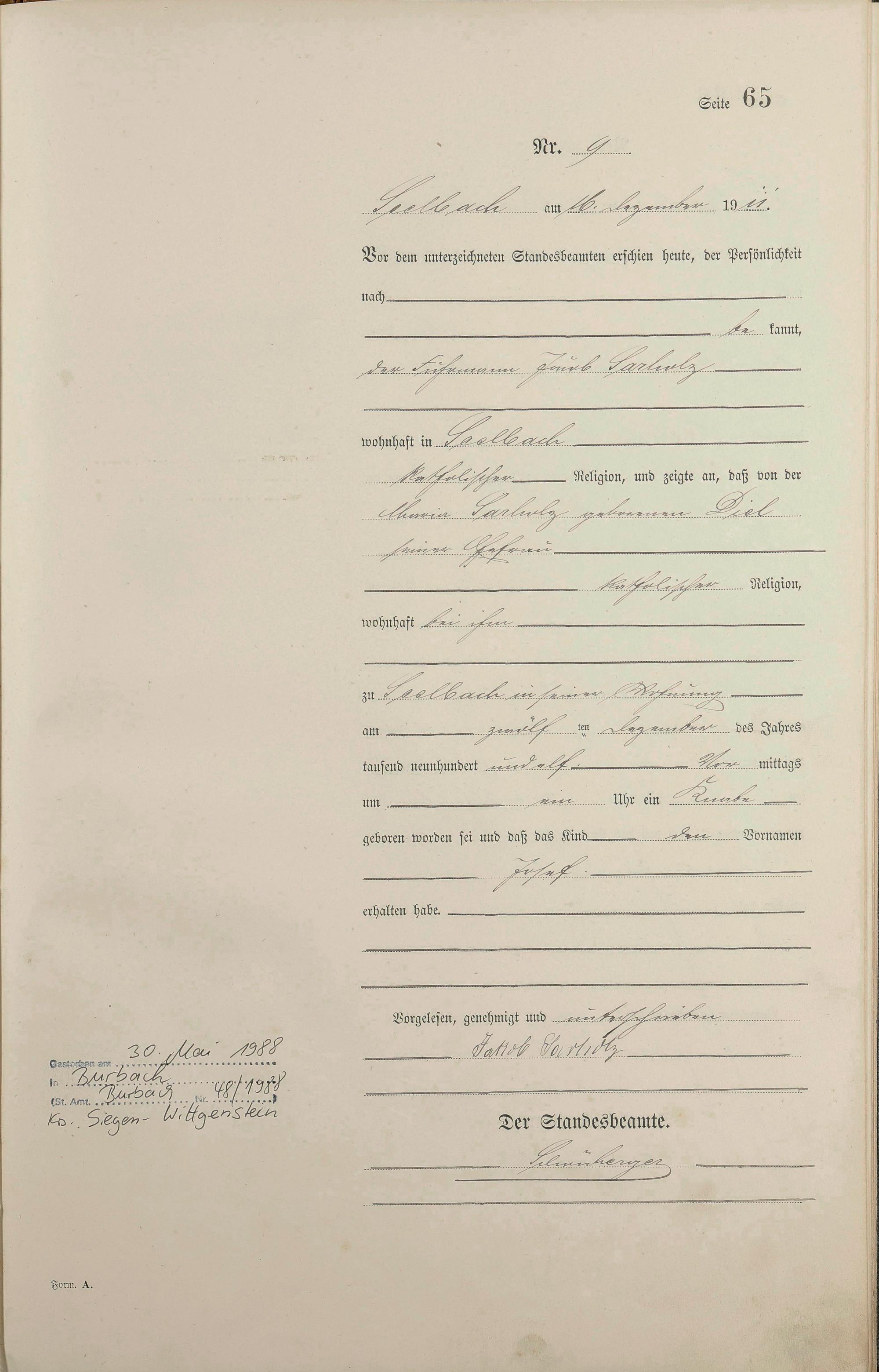Geburtsregister 1911