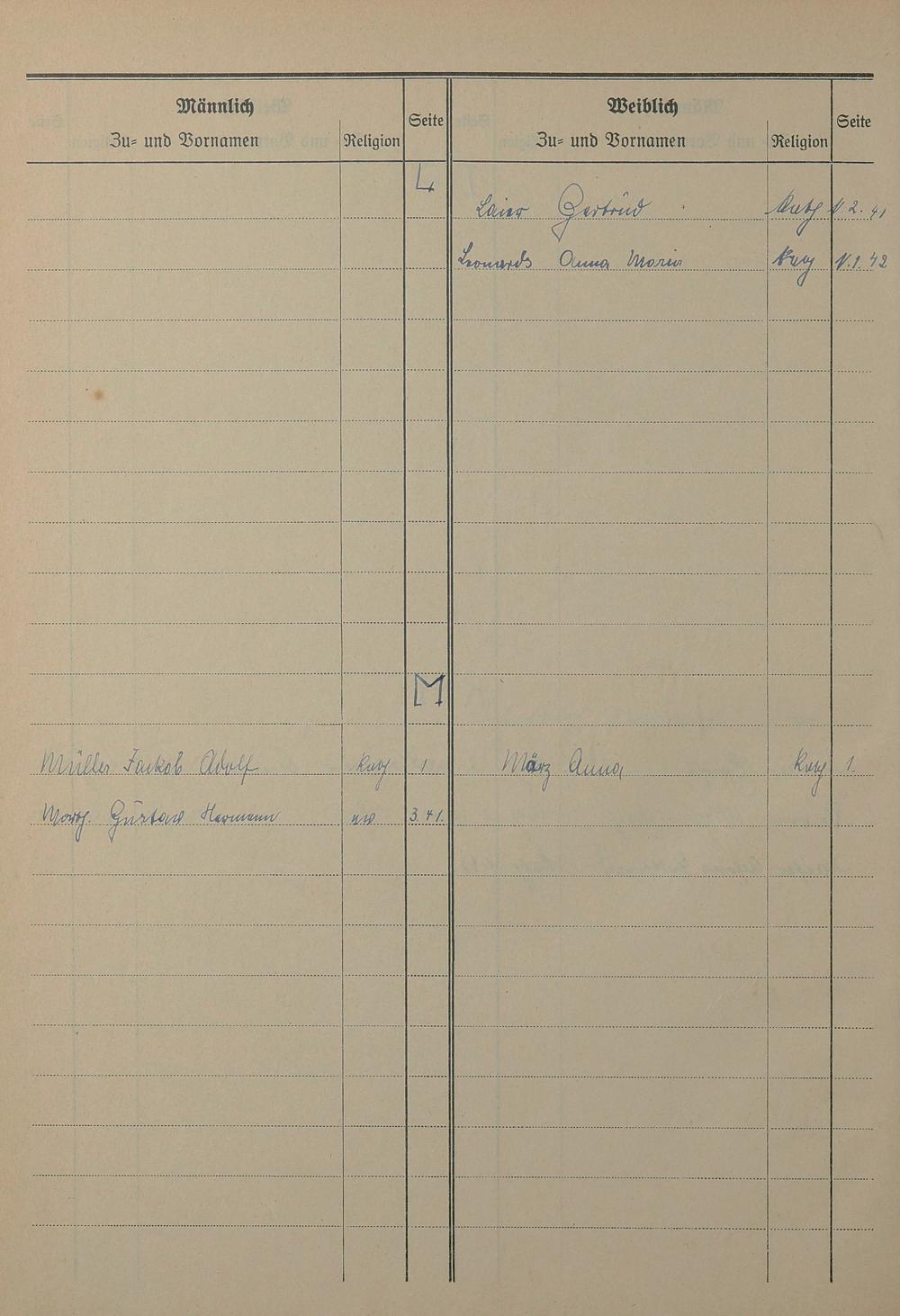 Register zum Heiratsregister 1938 Teil 2 - 1942