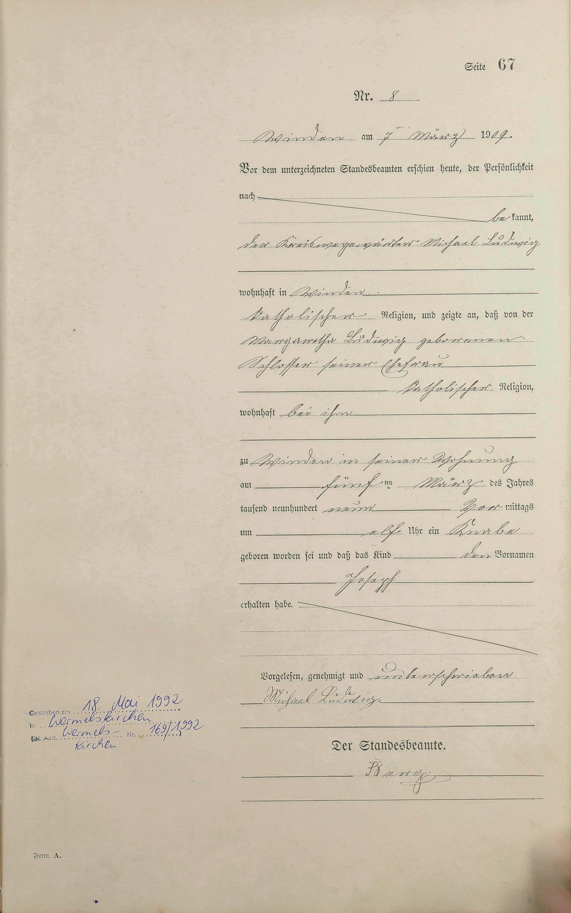 Geburtsregister 1909
