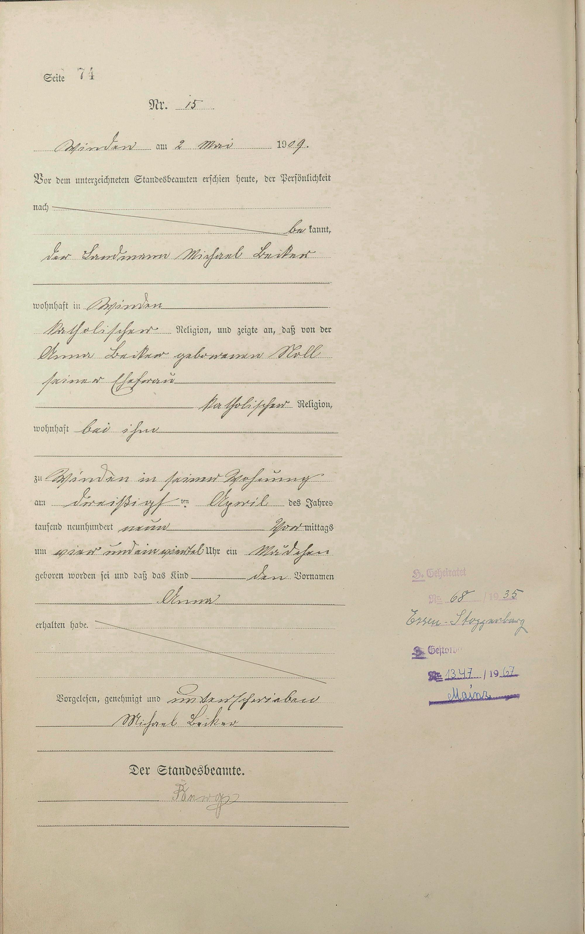 Geburtsregister 1909