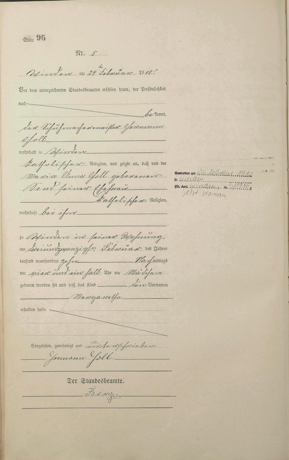 Geburtsregister 1910