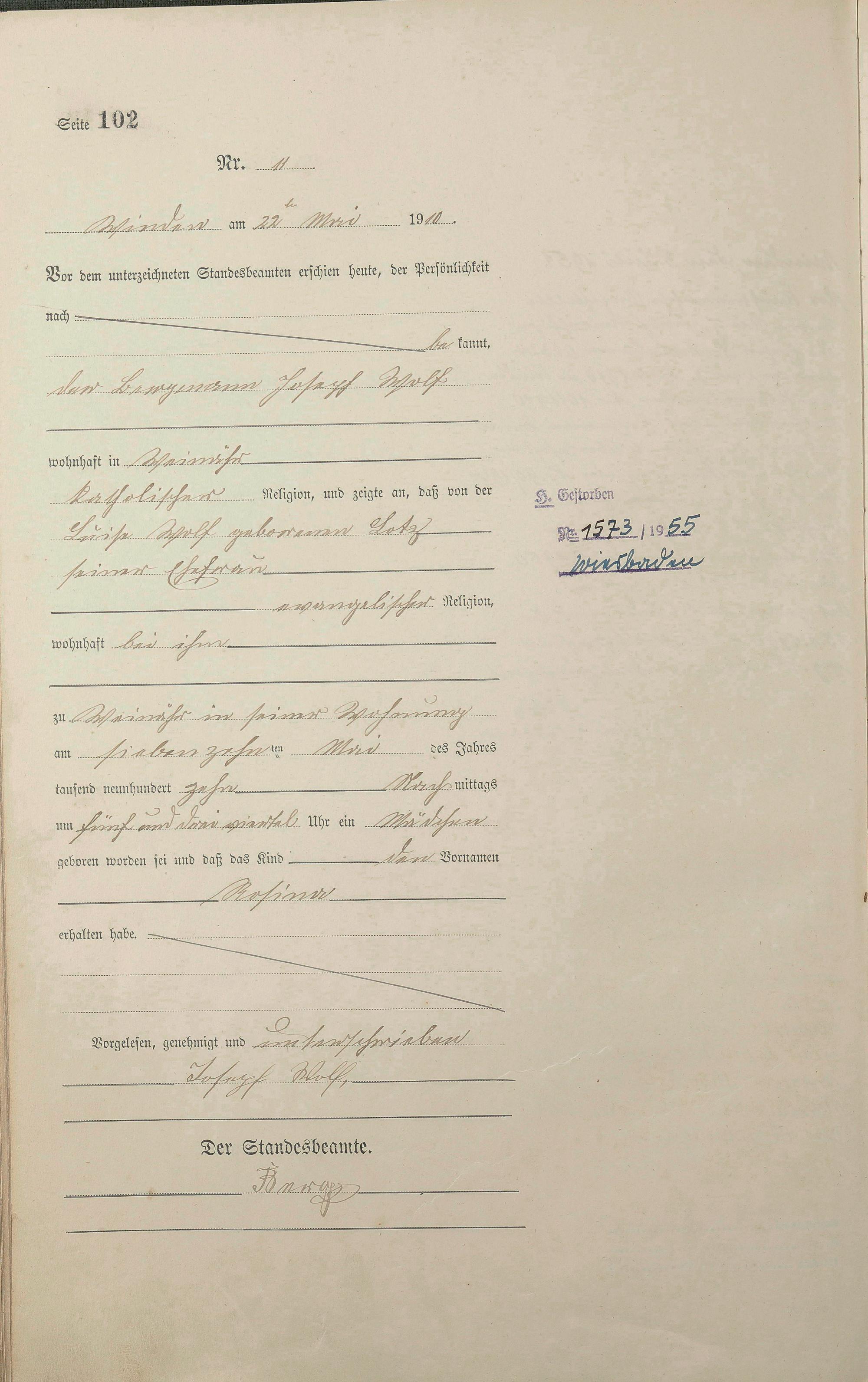 Geburtsregister 1910