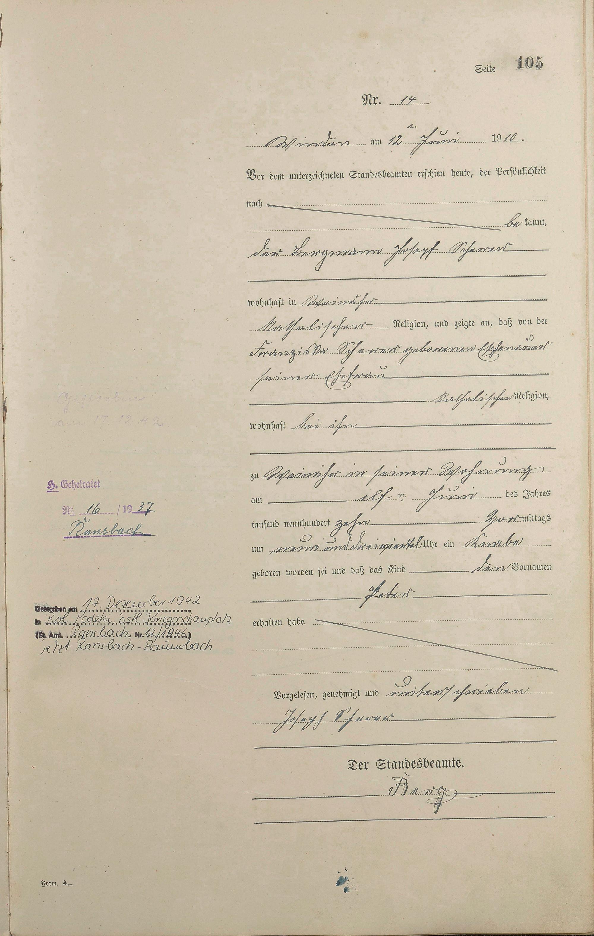Geburtsregister 1910
