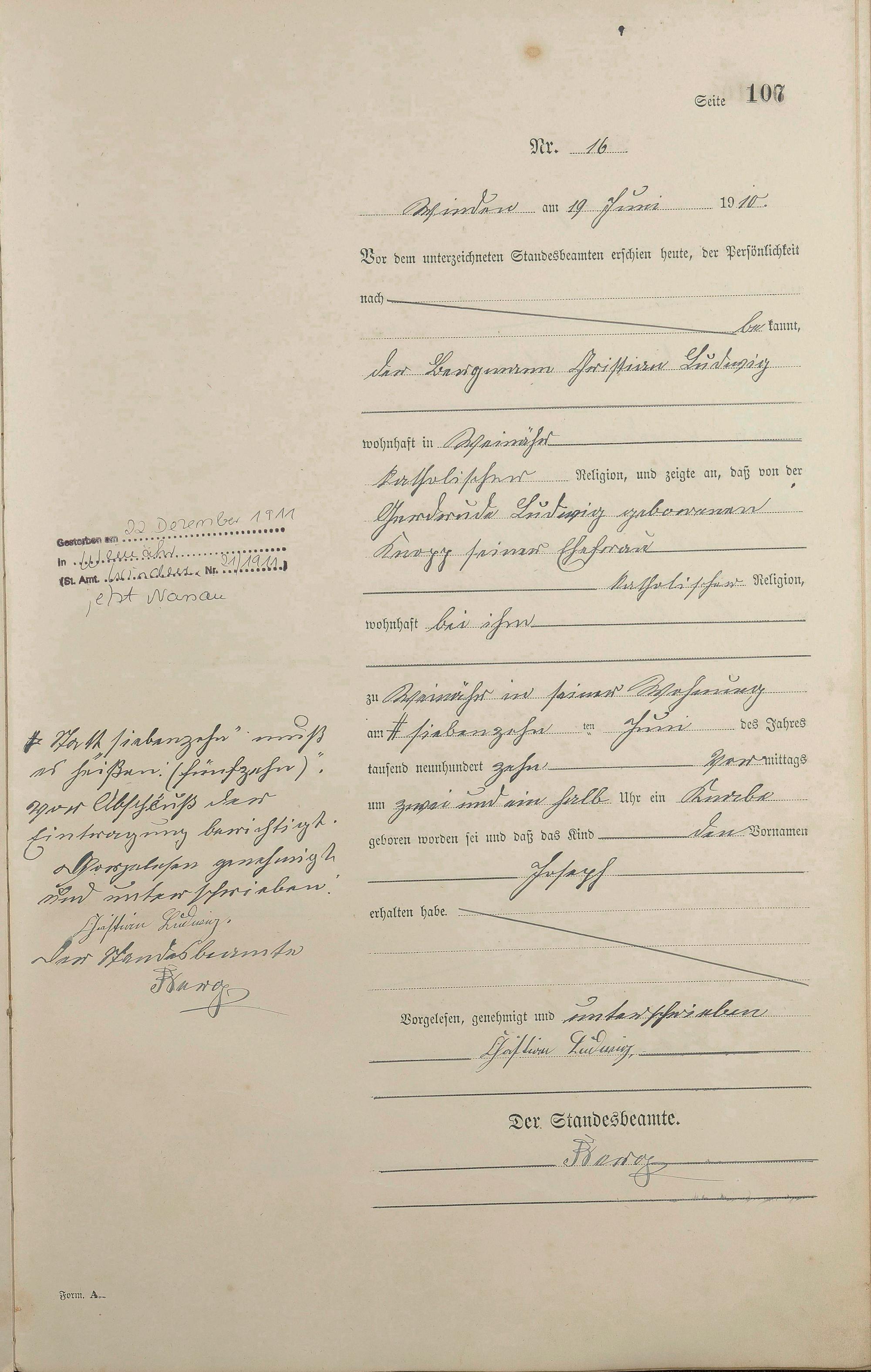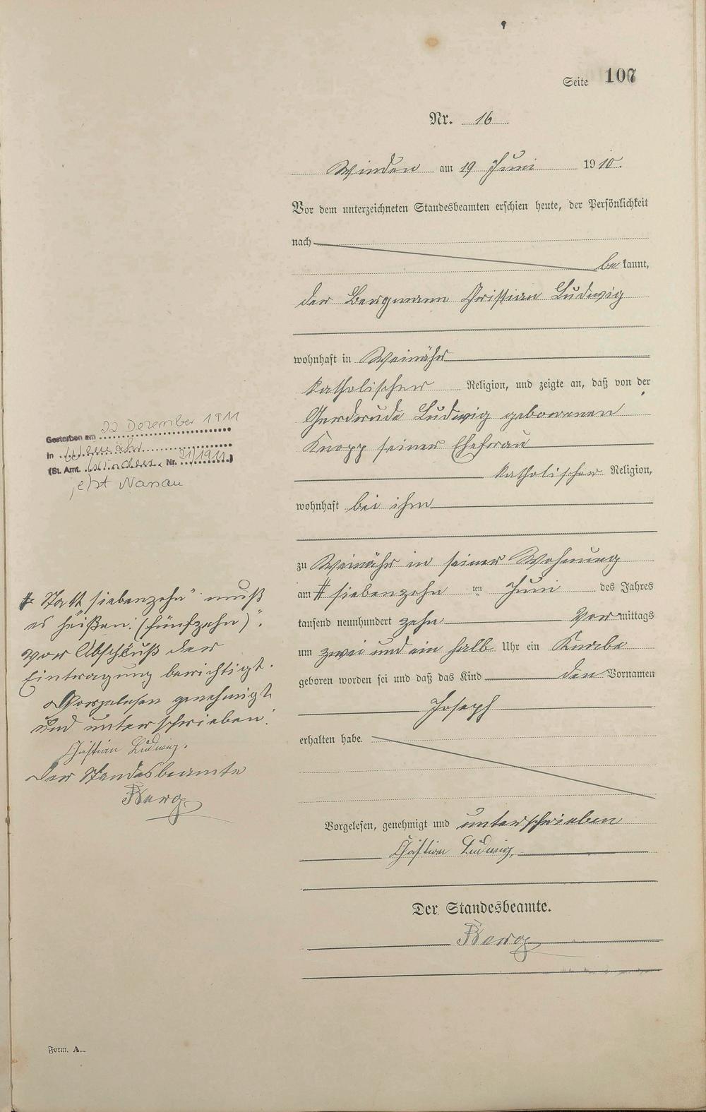 Geburtsregister 1910