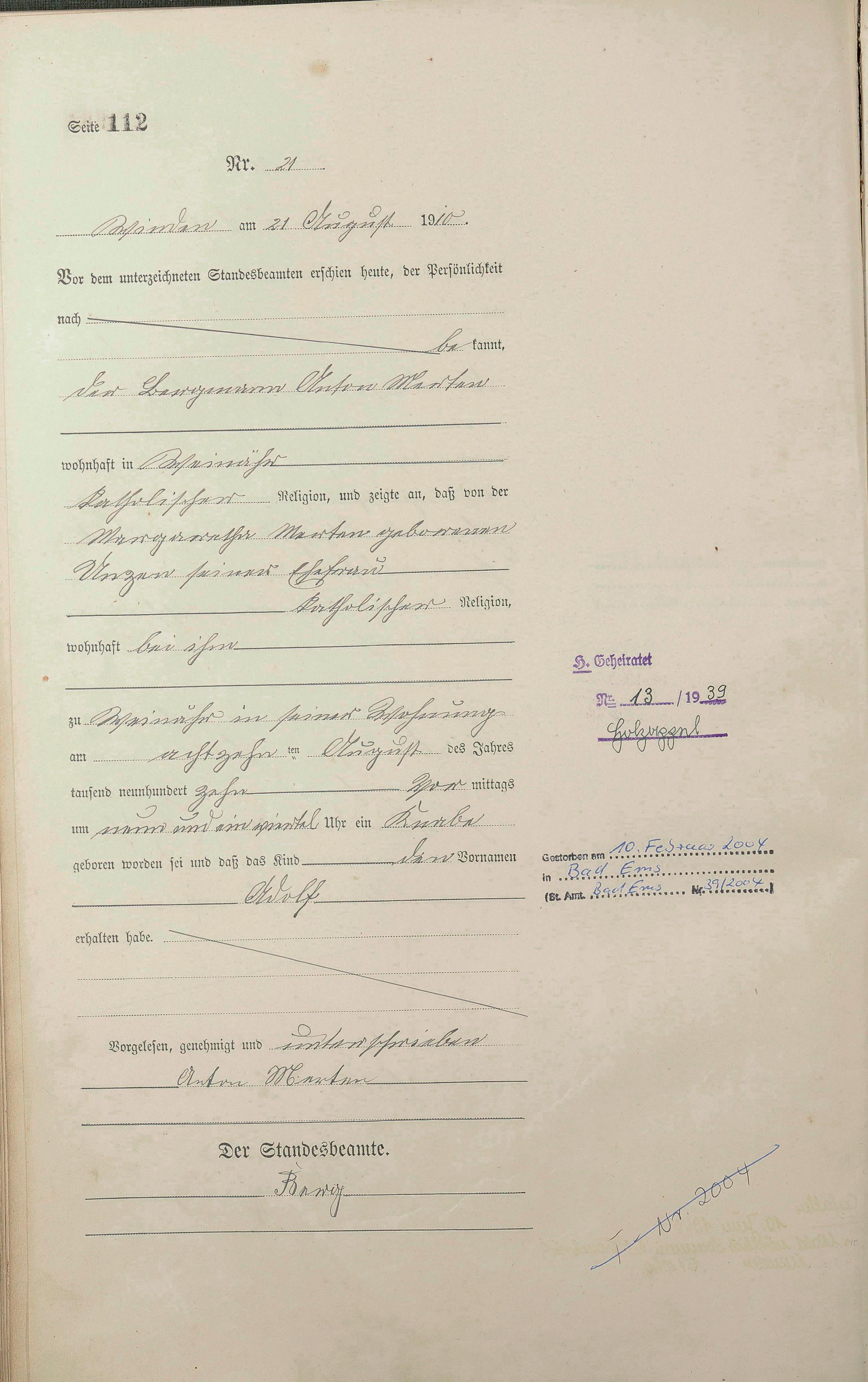 Geburtsregister 1910