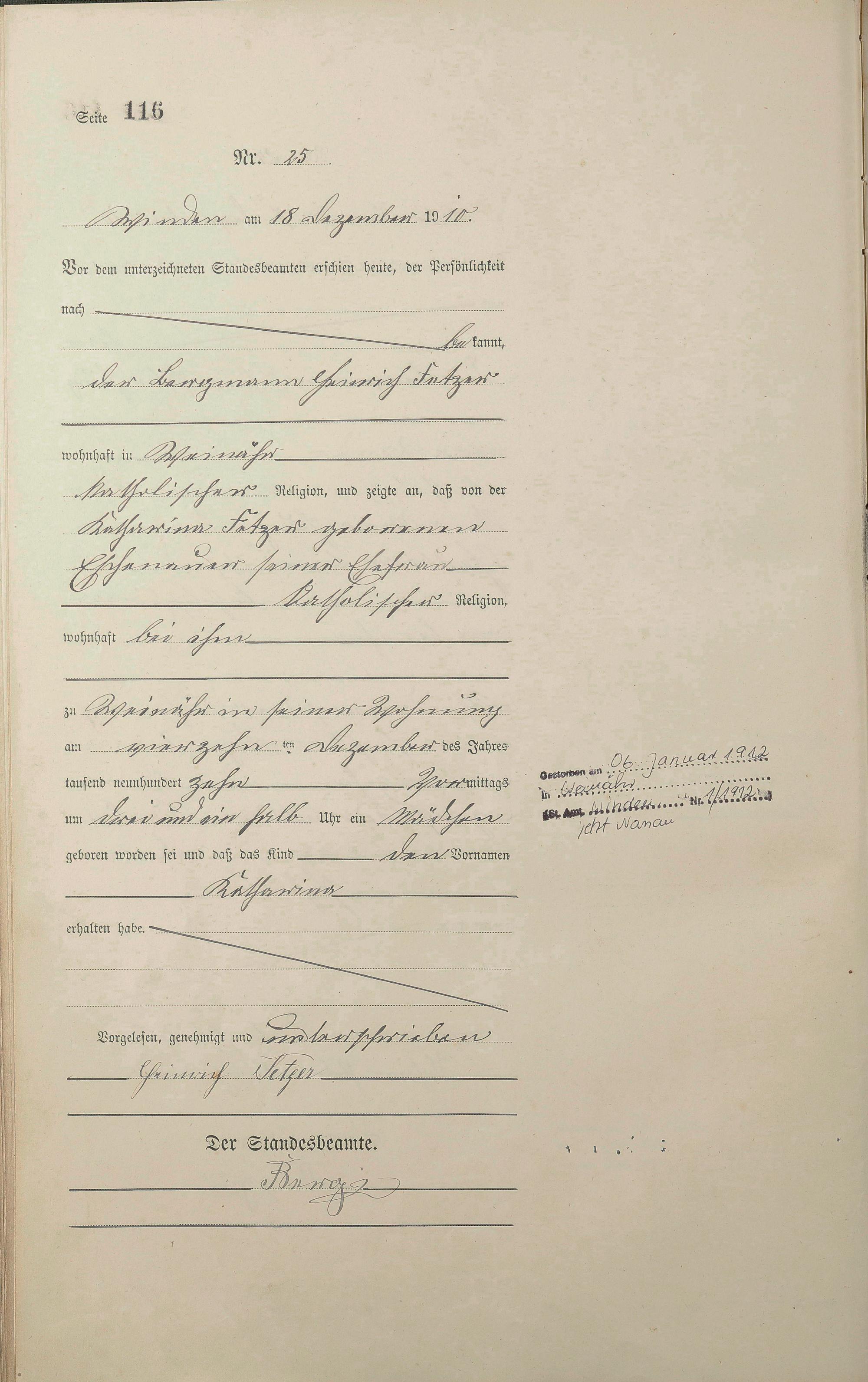 Geburtsregister 1910
