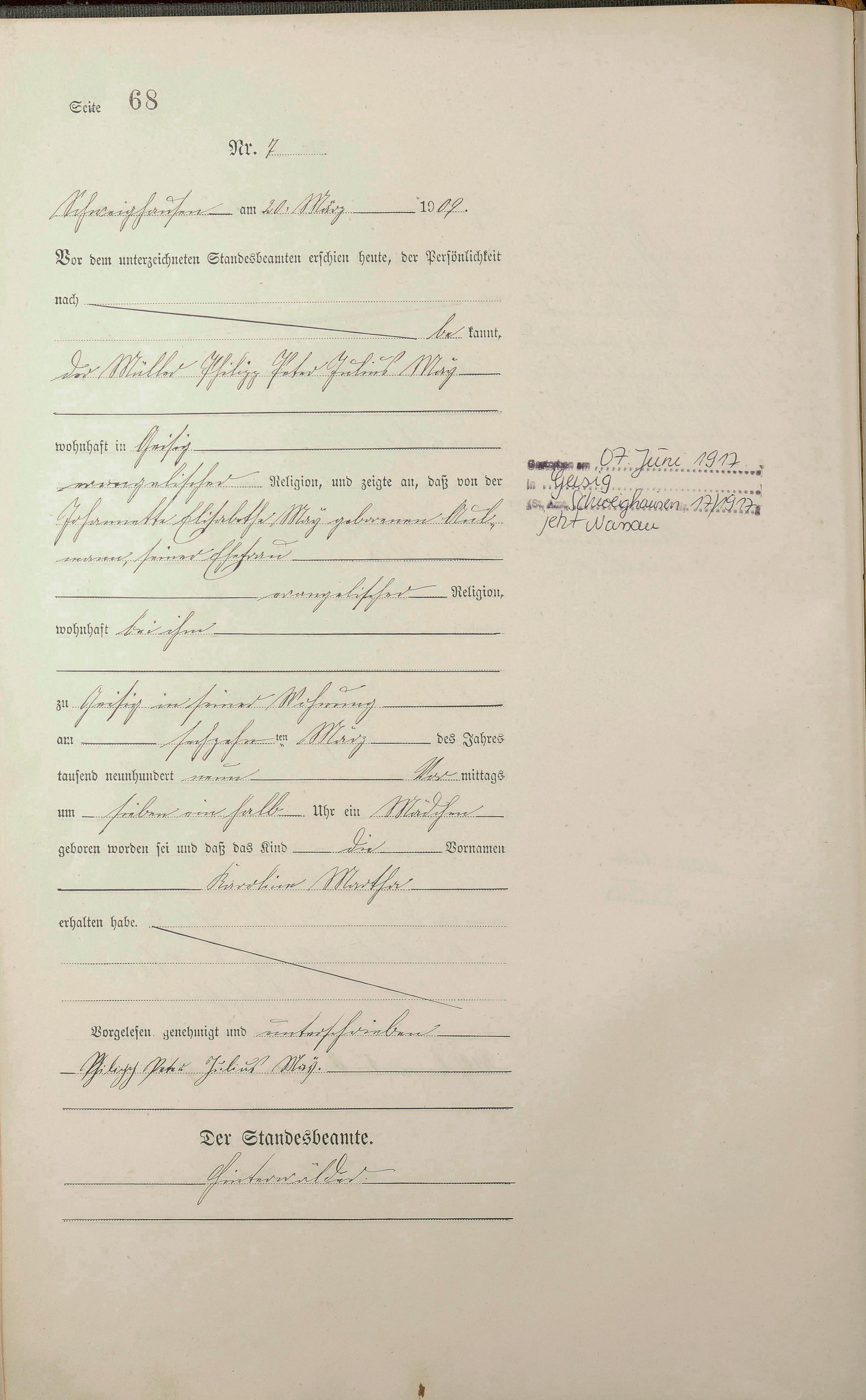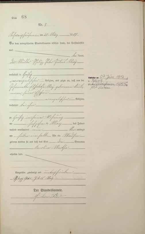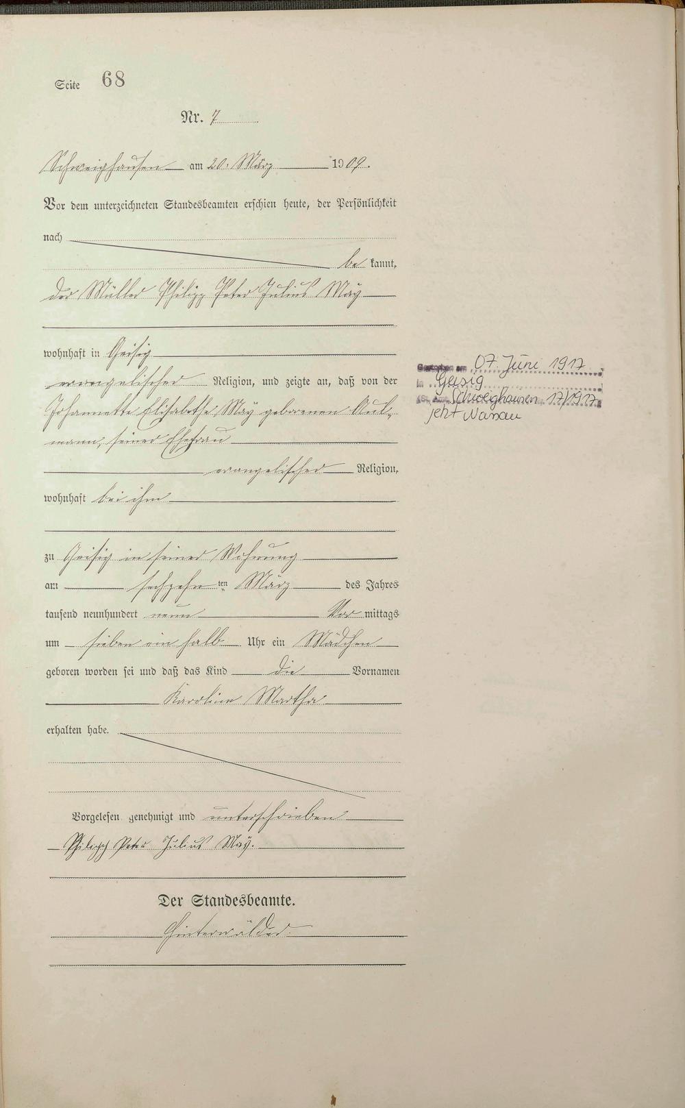 Geburtsregister 1909
