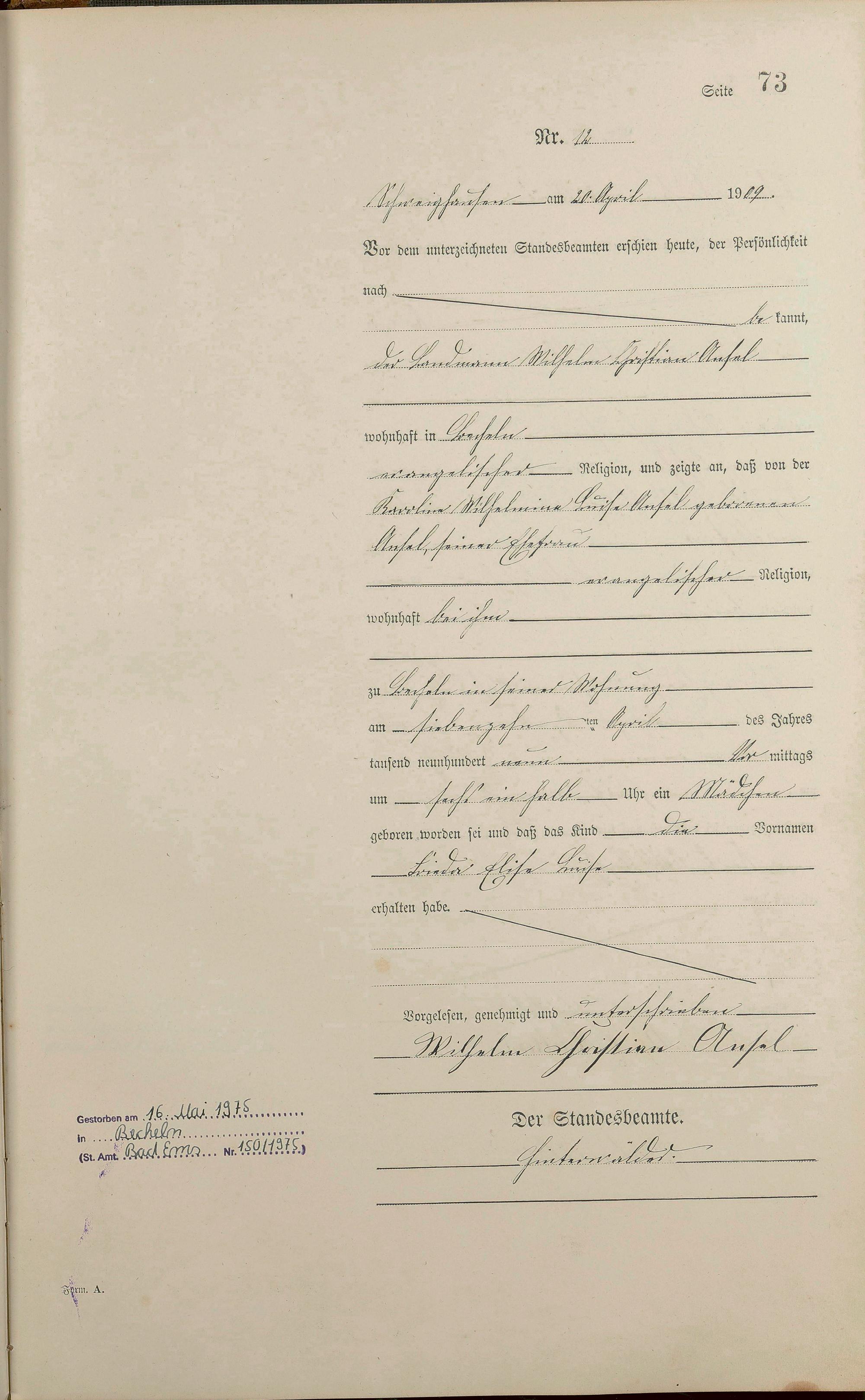Geburtsregister 1909