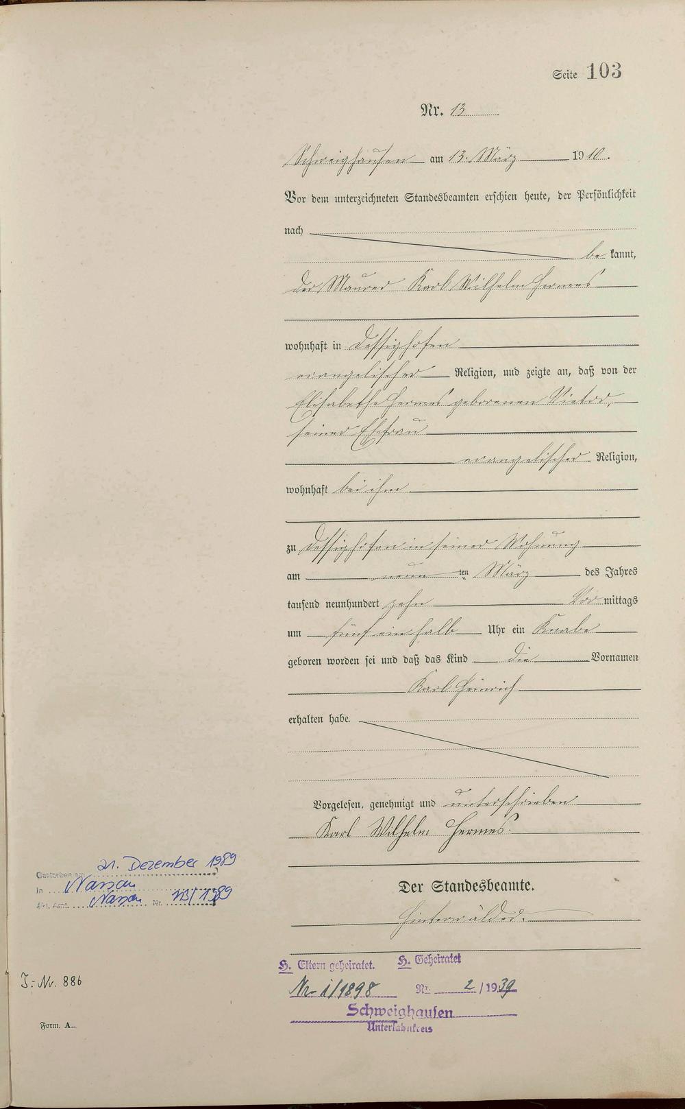 Geburtsregister 1910