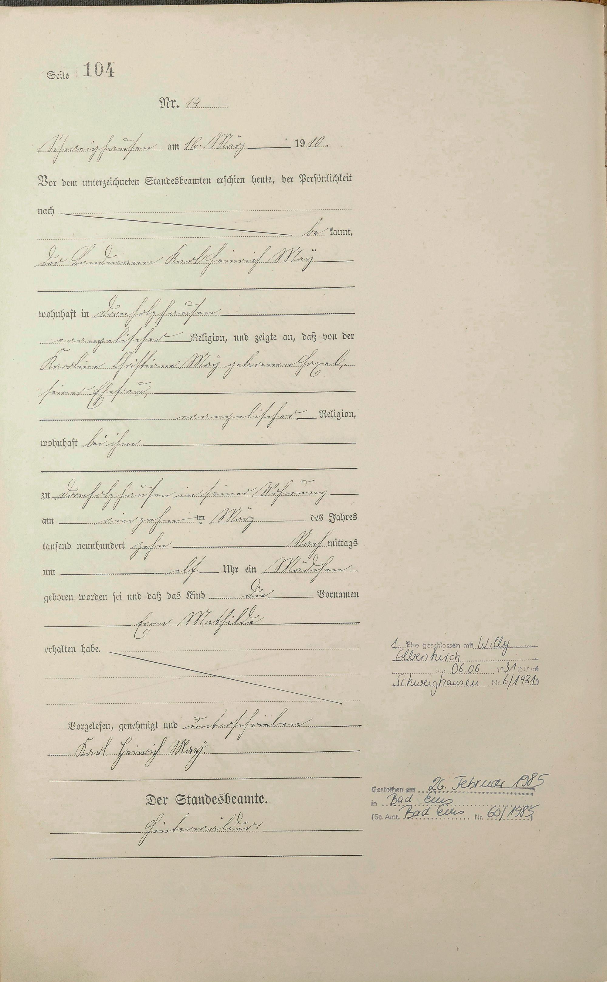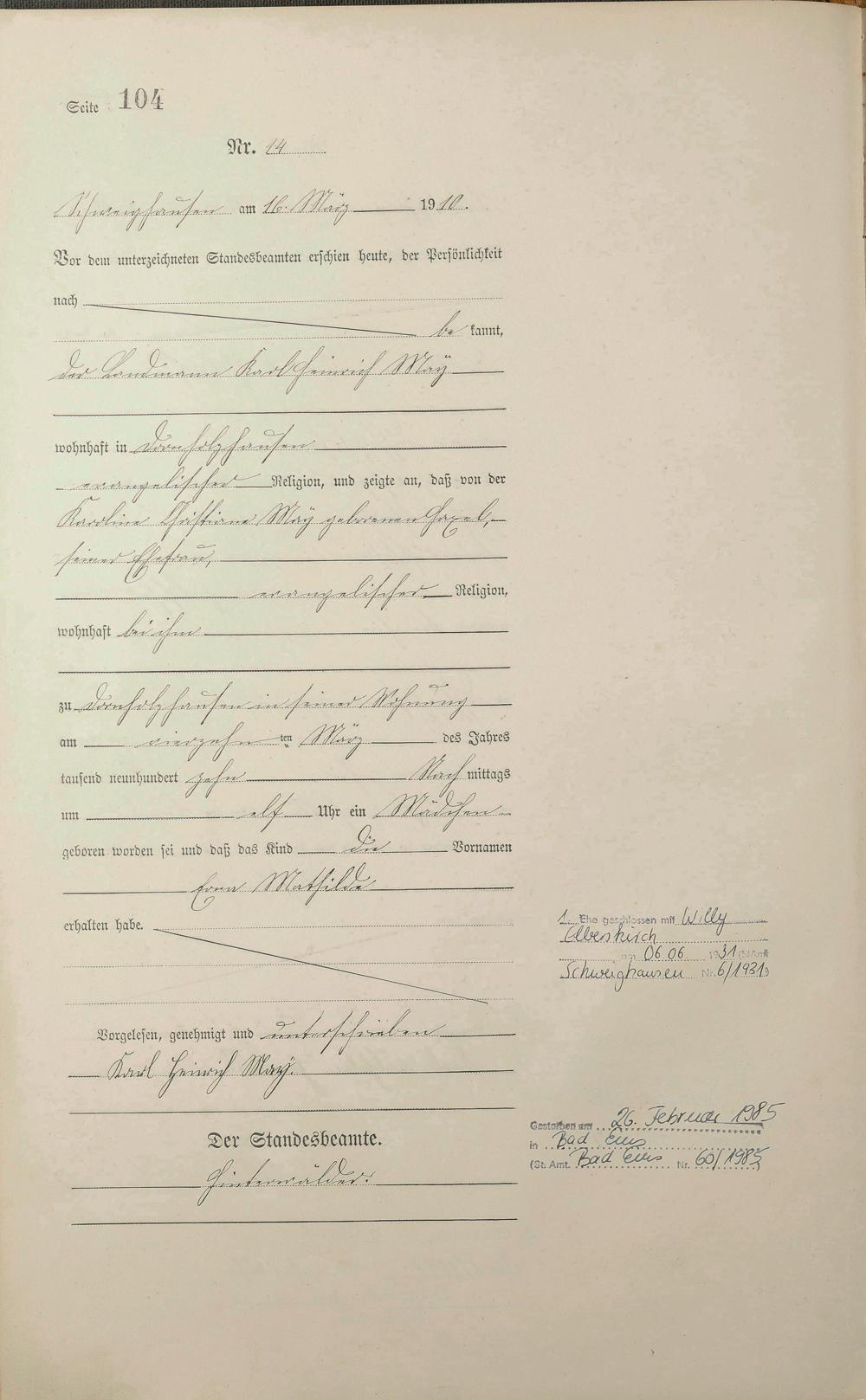Geburtsregister 1910