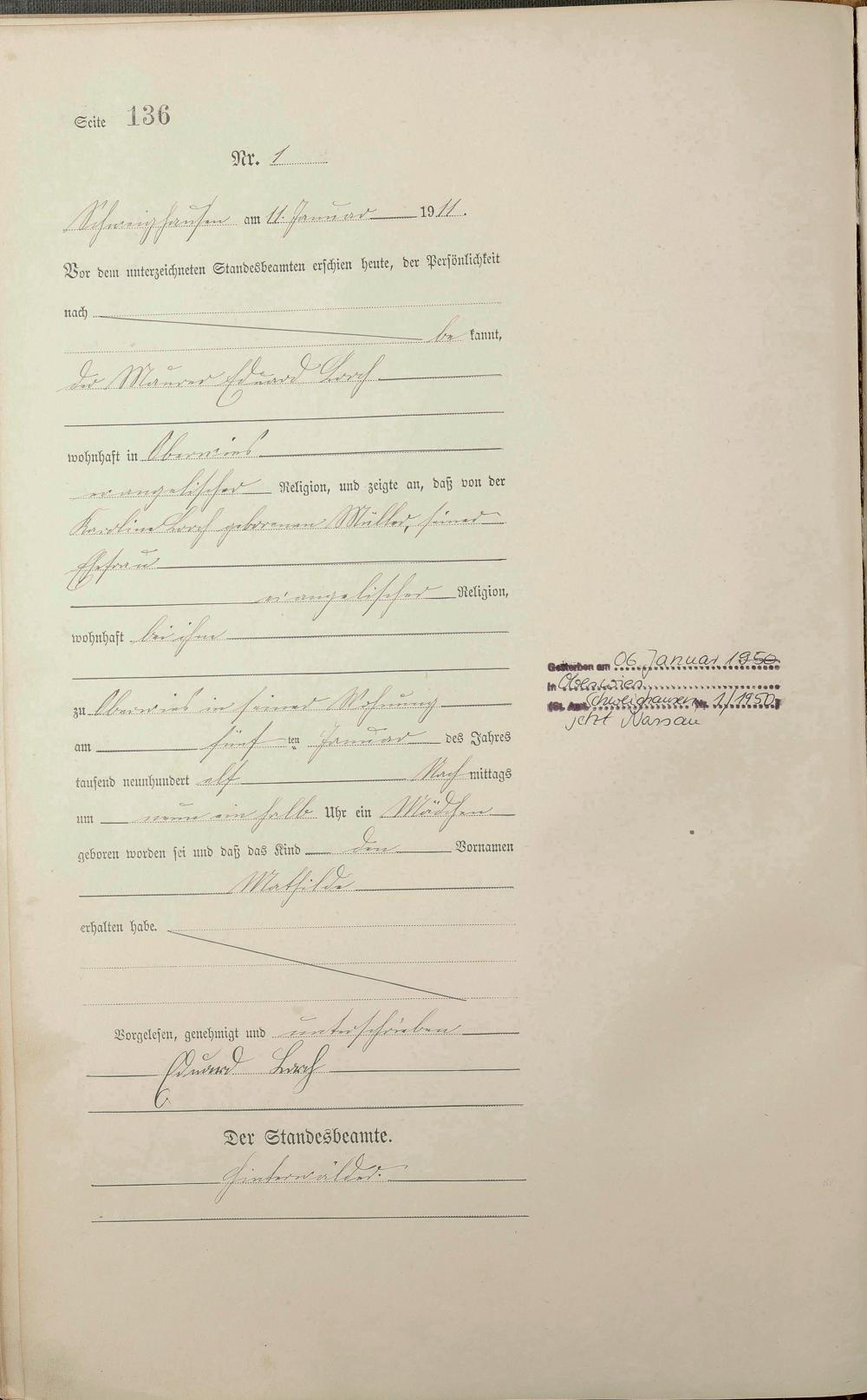 Geburtsregister 1911