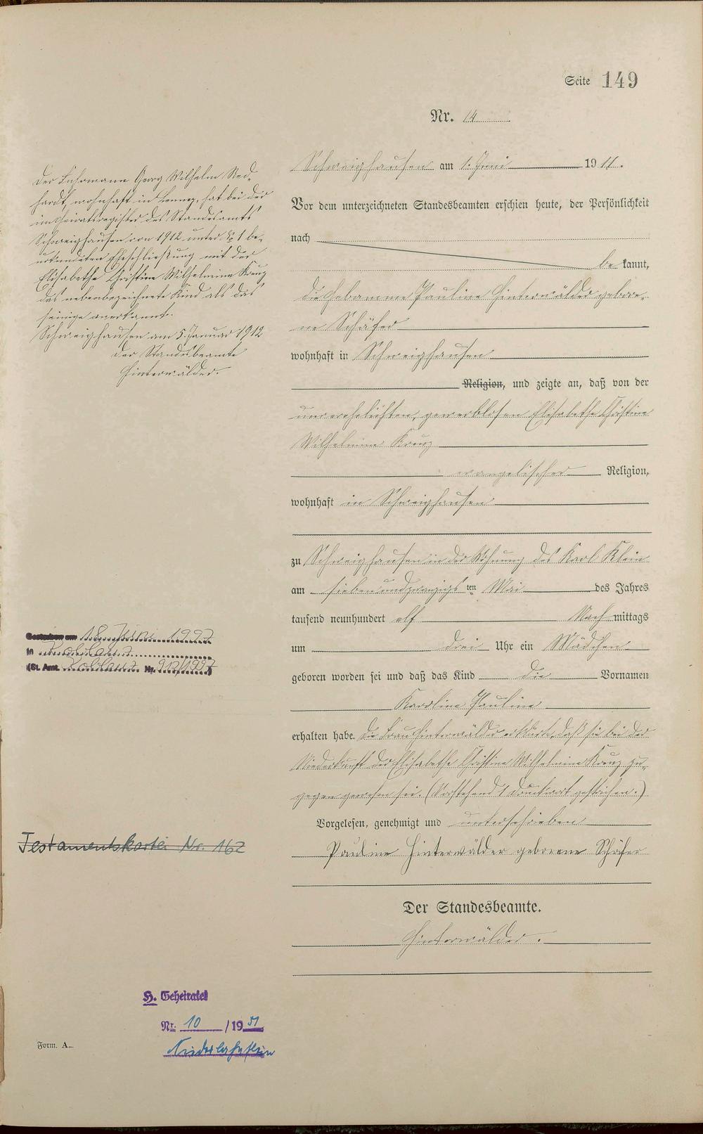 Geburtsregister 1911
