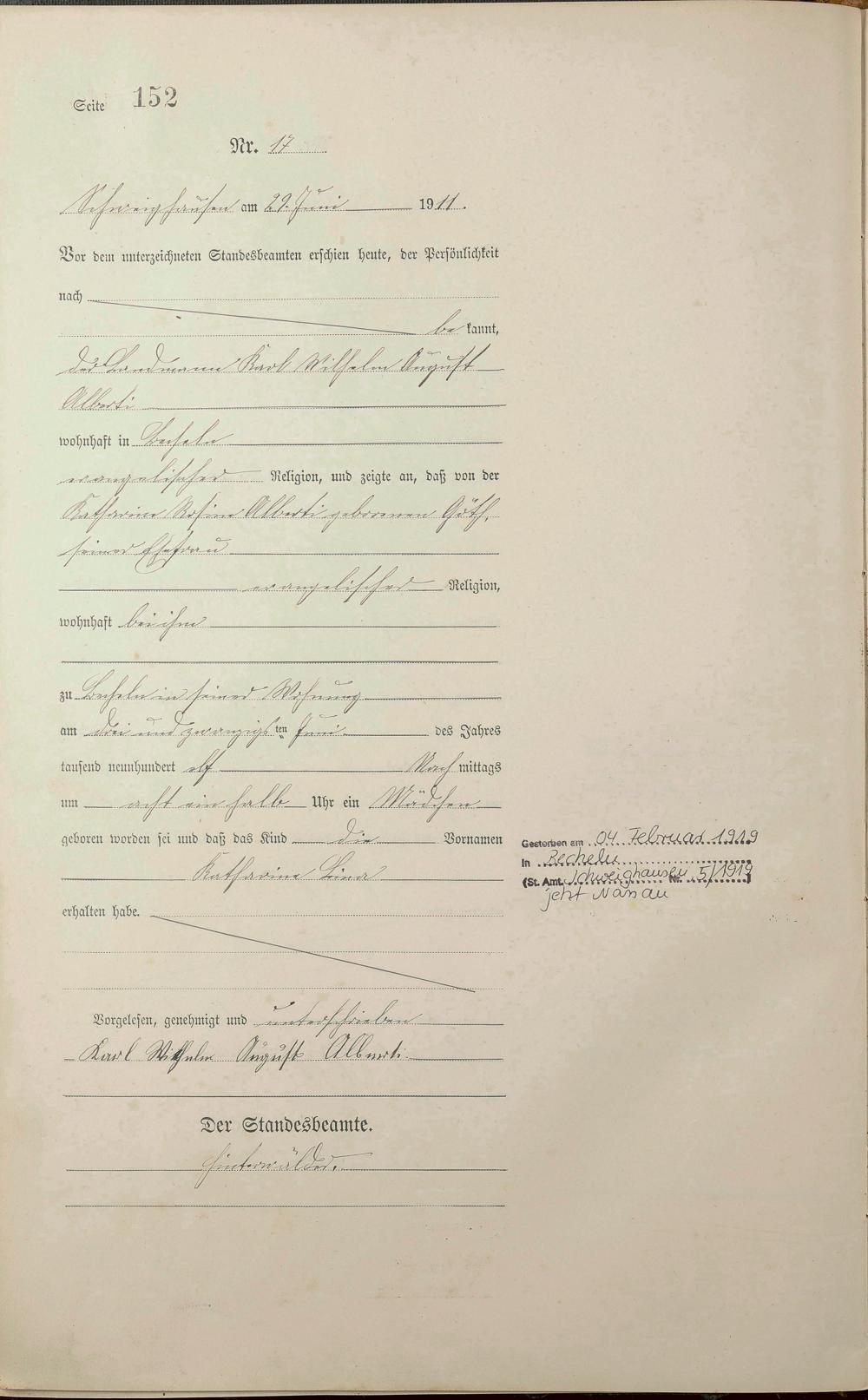 Geburtsregister 1911