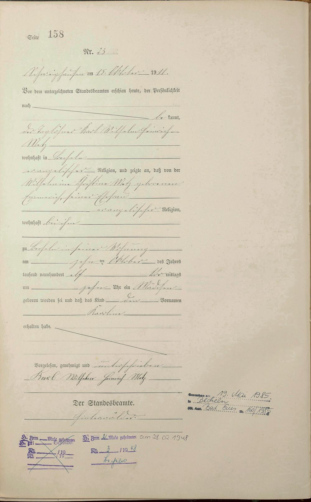Geburtsregister 1911