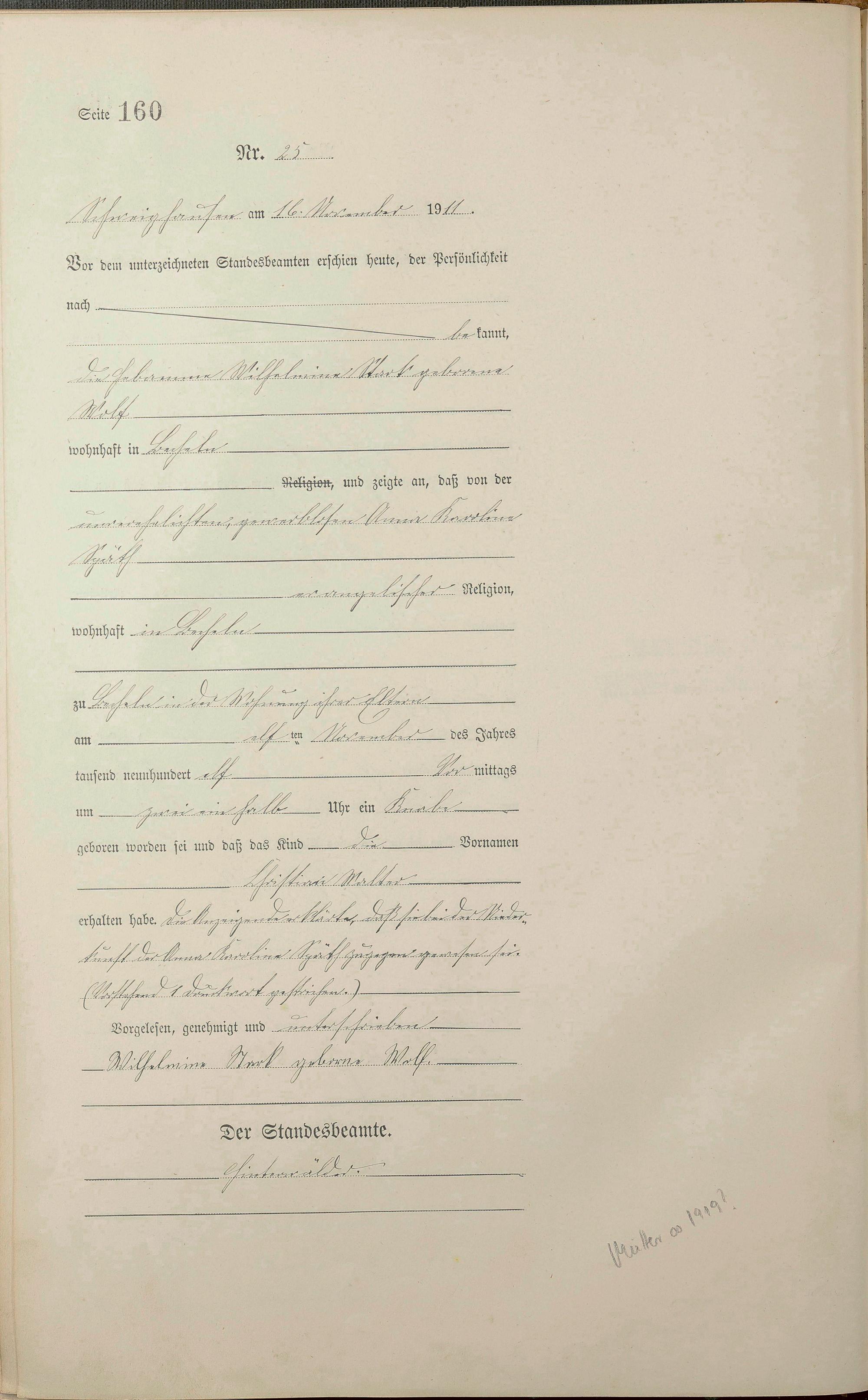 Geburtsregister 1911