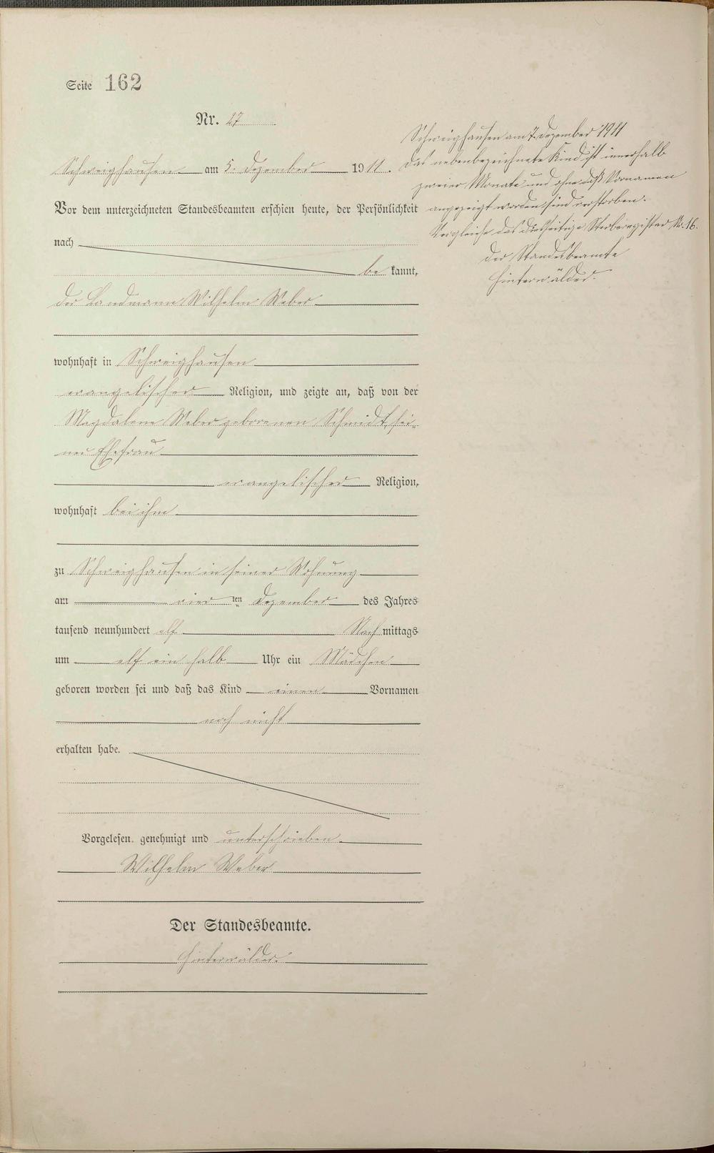 Geburtsregister 1911