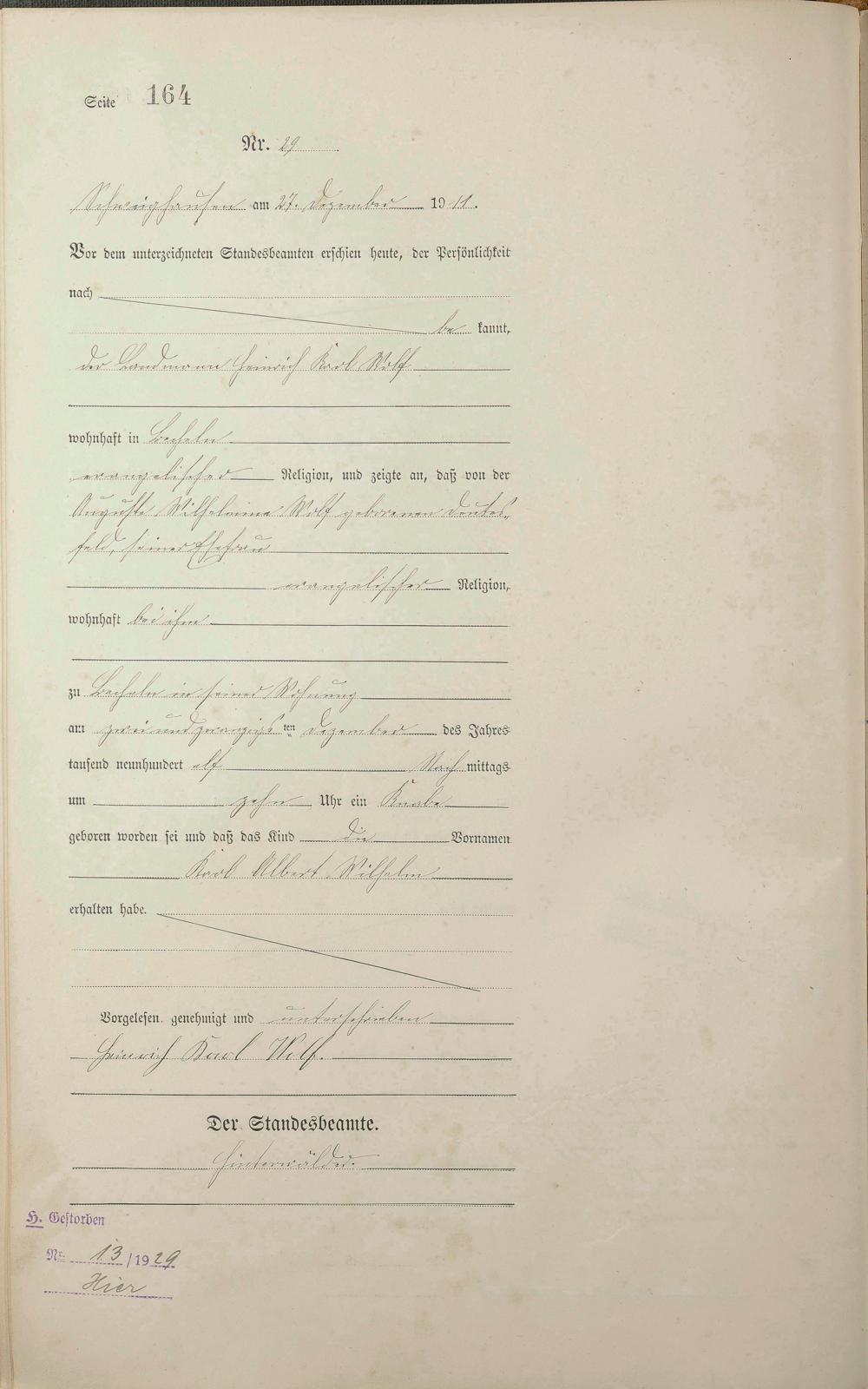 Geburtsregister 1911