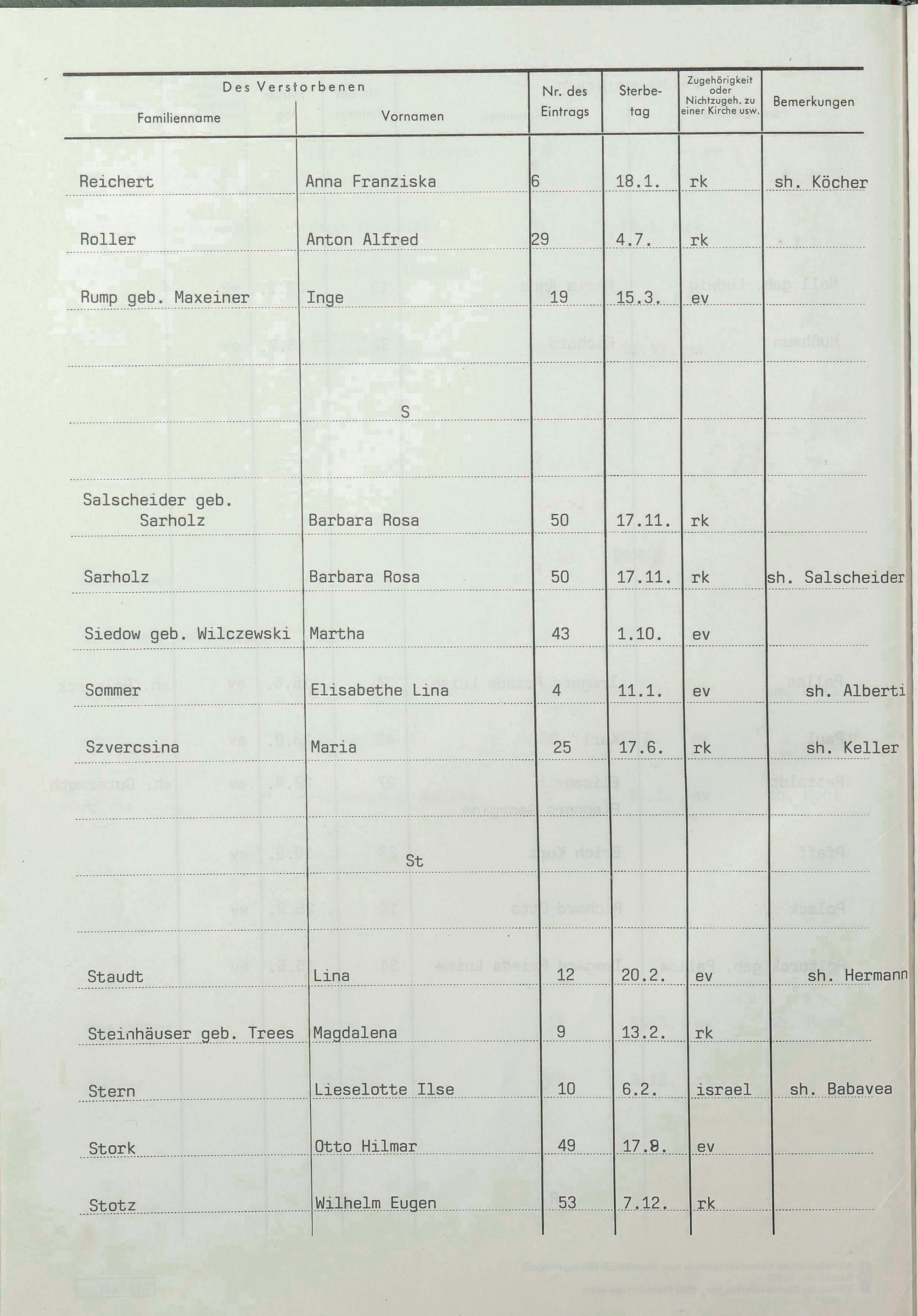 Sterberegister 1988