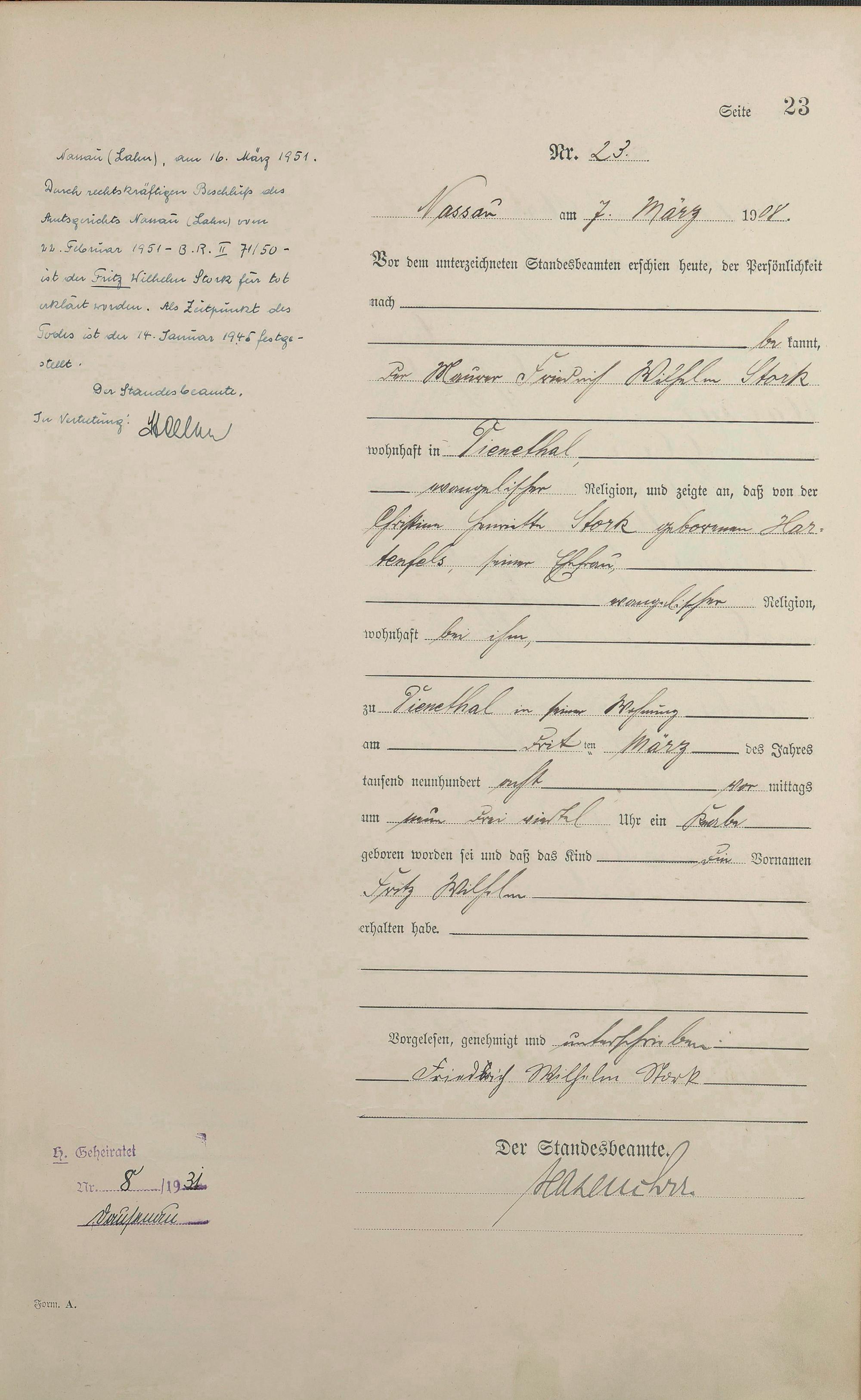 Geburtsregister 1908
