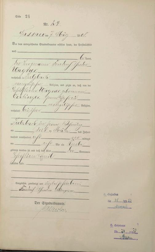 Geburtsregister 1908