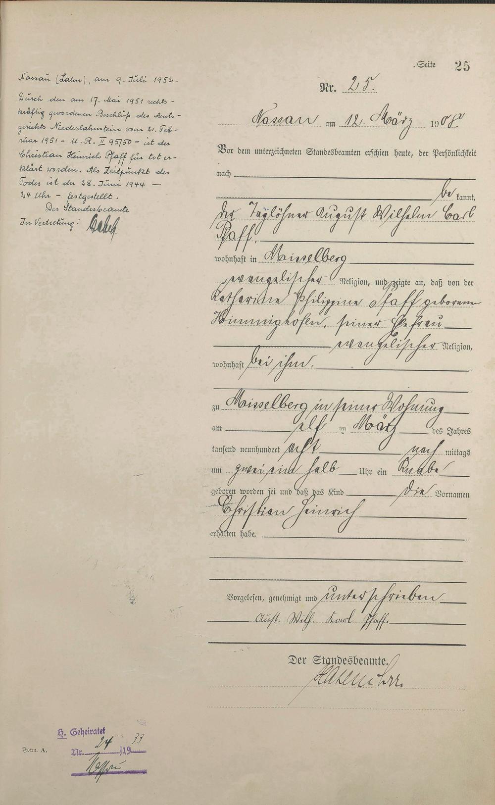 Geburtsregister 1908