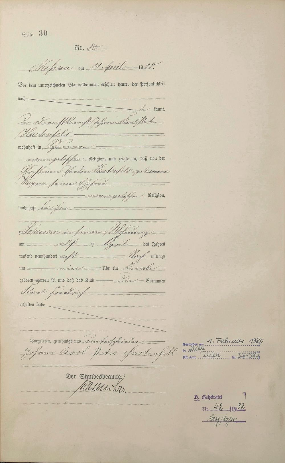 Geburtsregister 1908