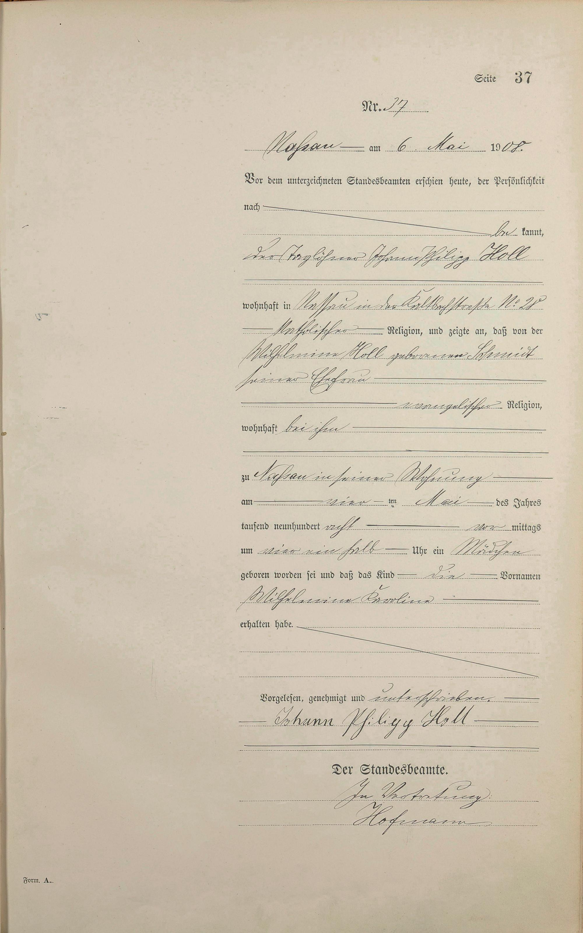 Geburtsregister 1908