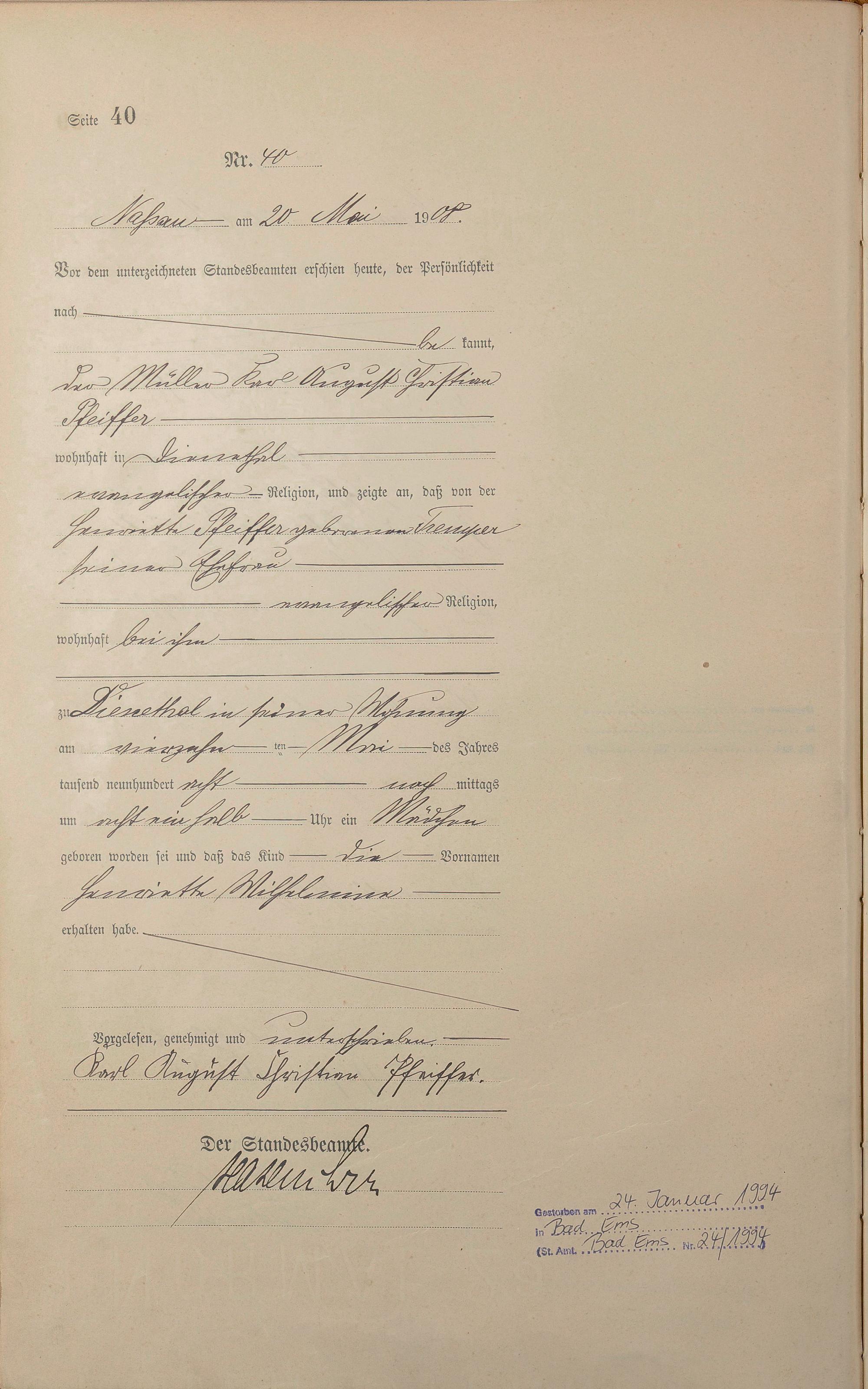Geburtsregister 1908