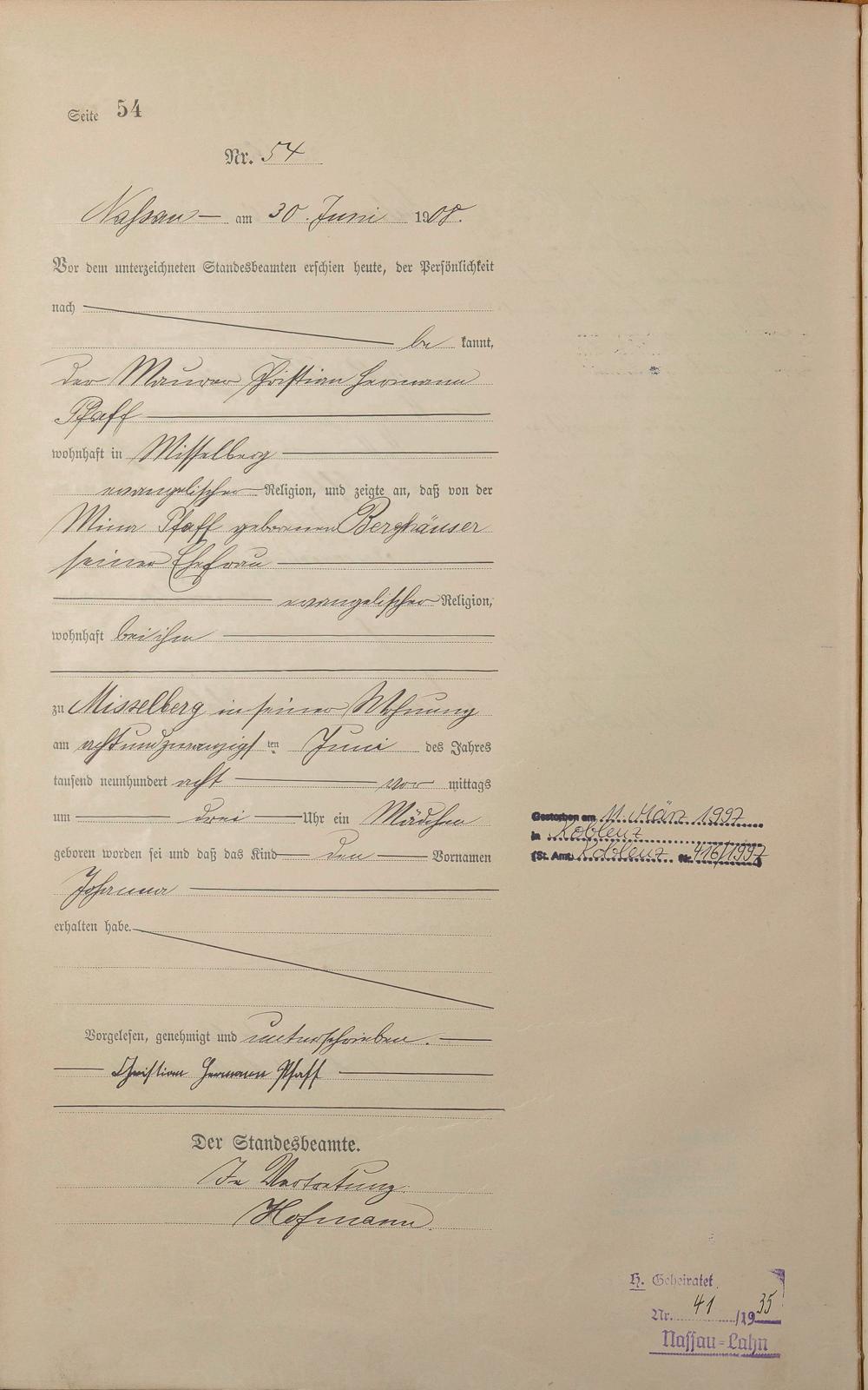 Geburtsregister 1908