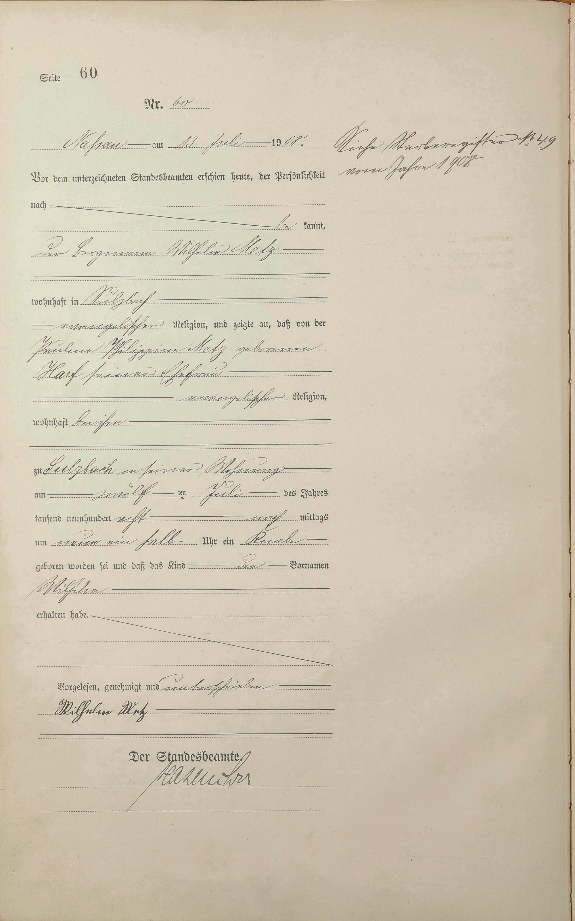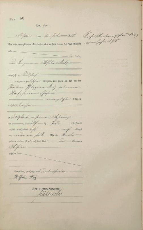Geburtsregister 1908