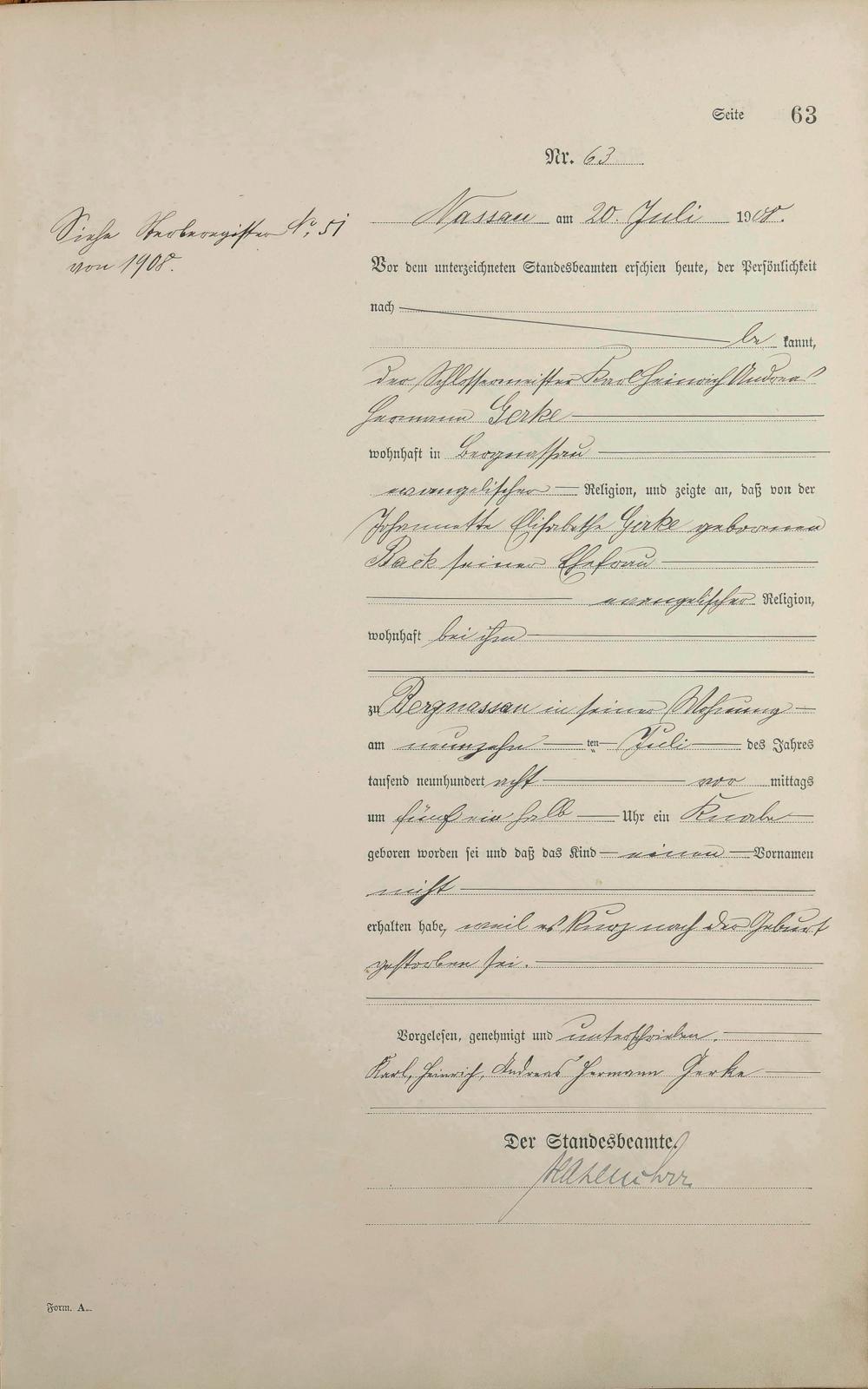 Geburtsregister 1908
