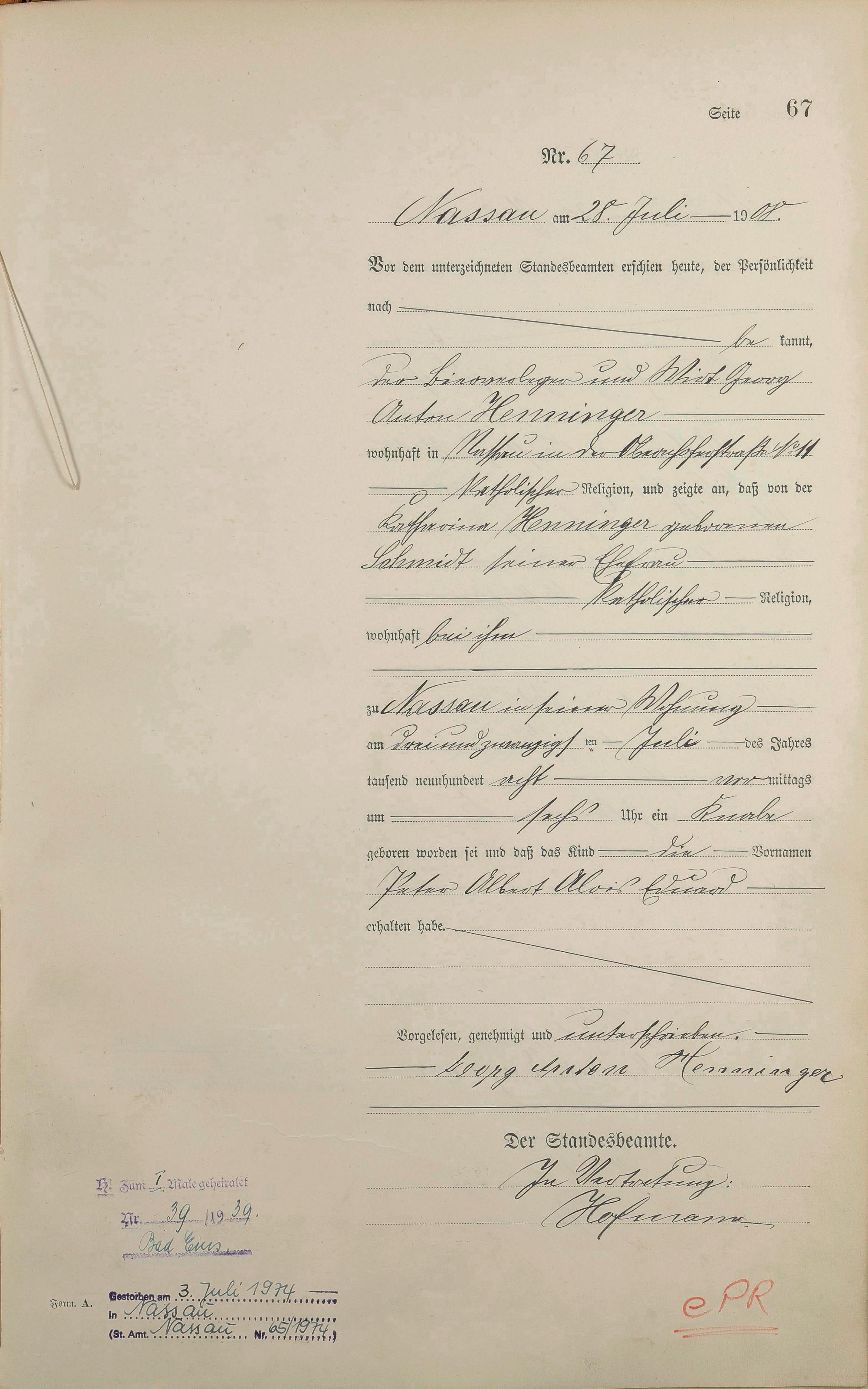 Geburtsregister 1908