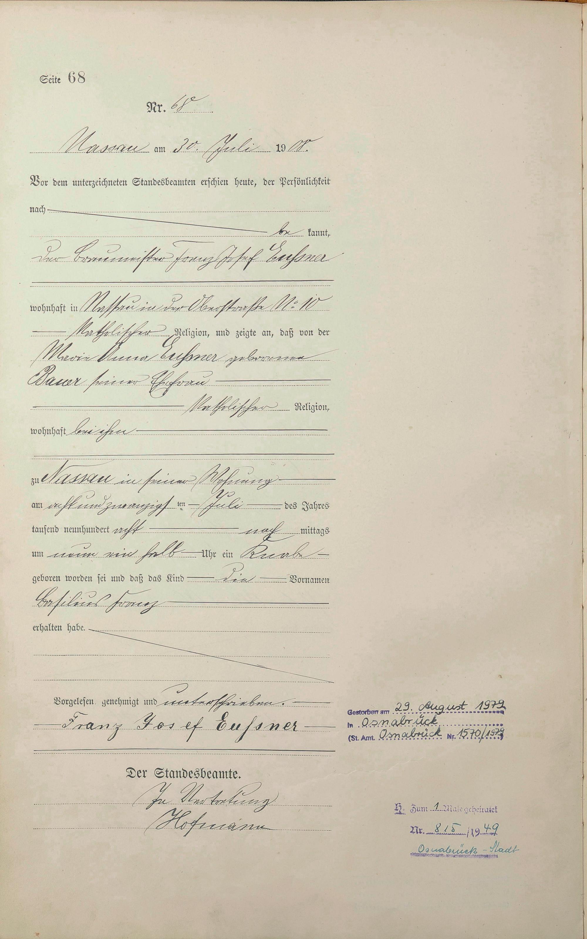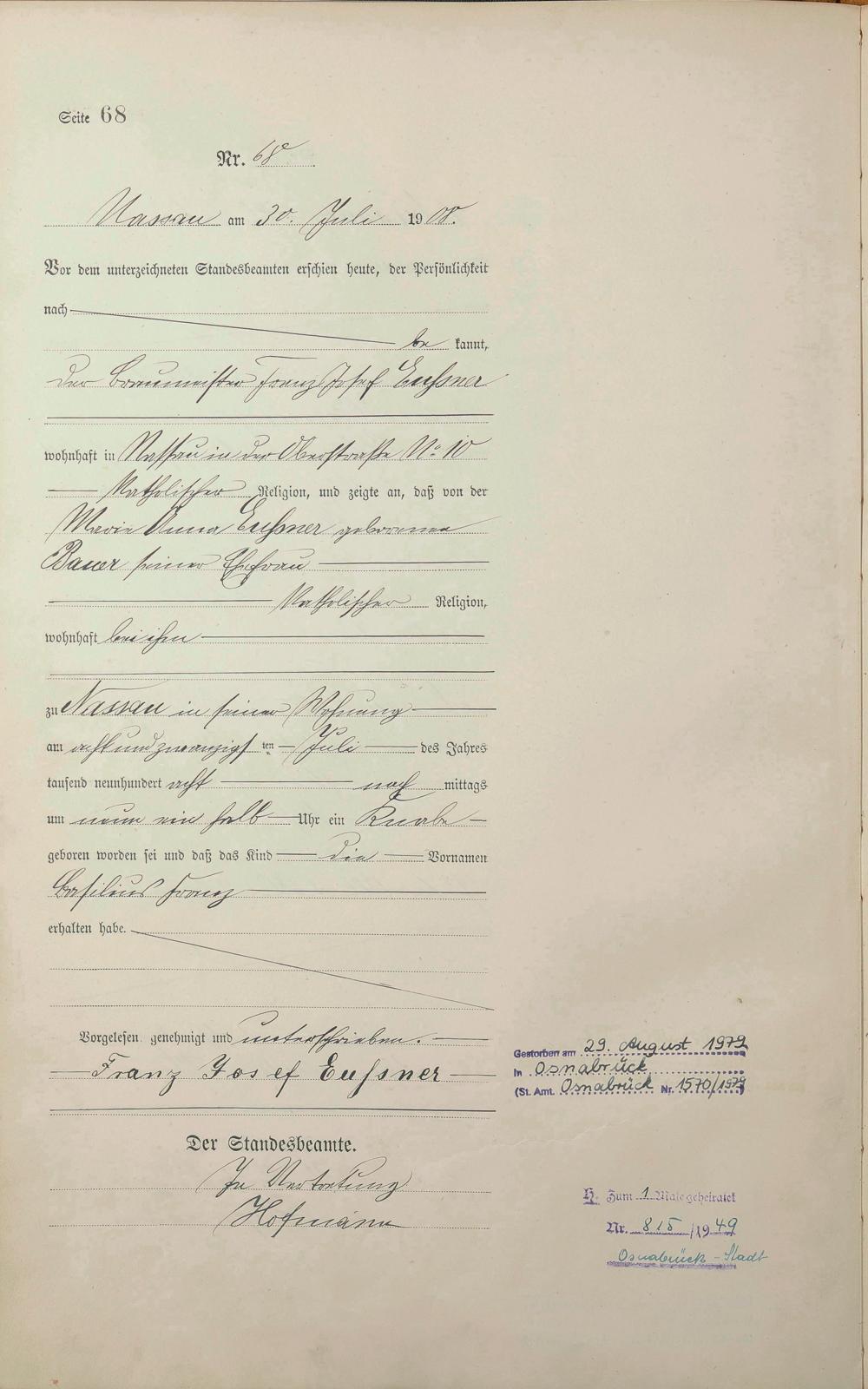 Geburtsregister 1908