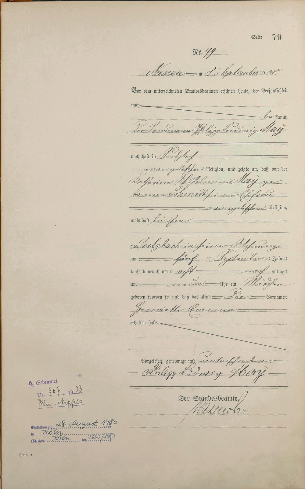 Geburtsregister 1908