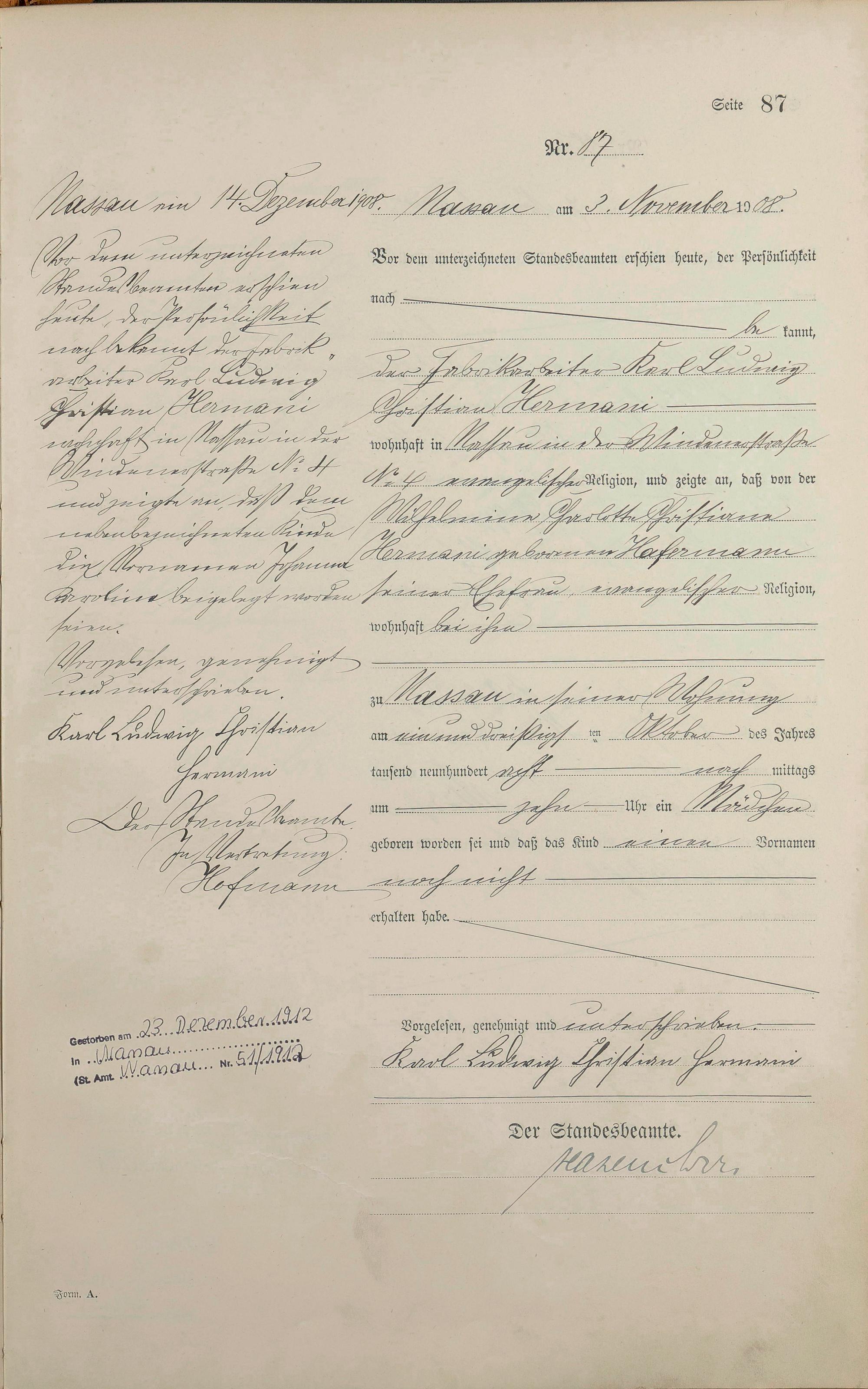 Geburtsregister 1908