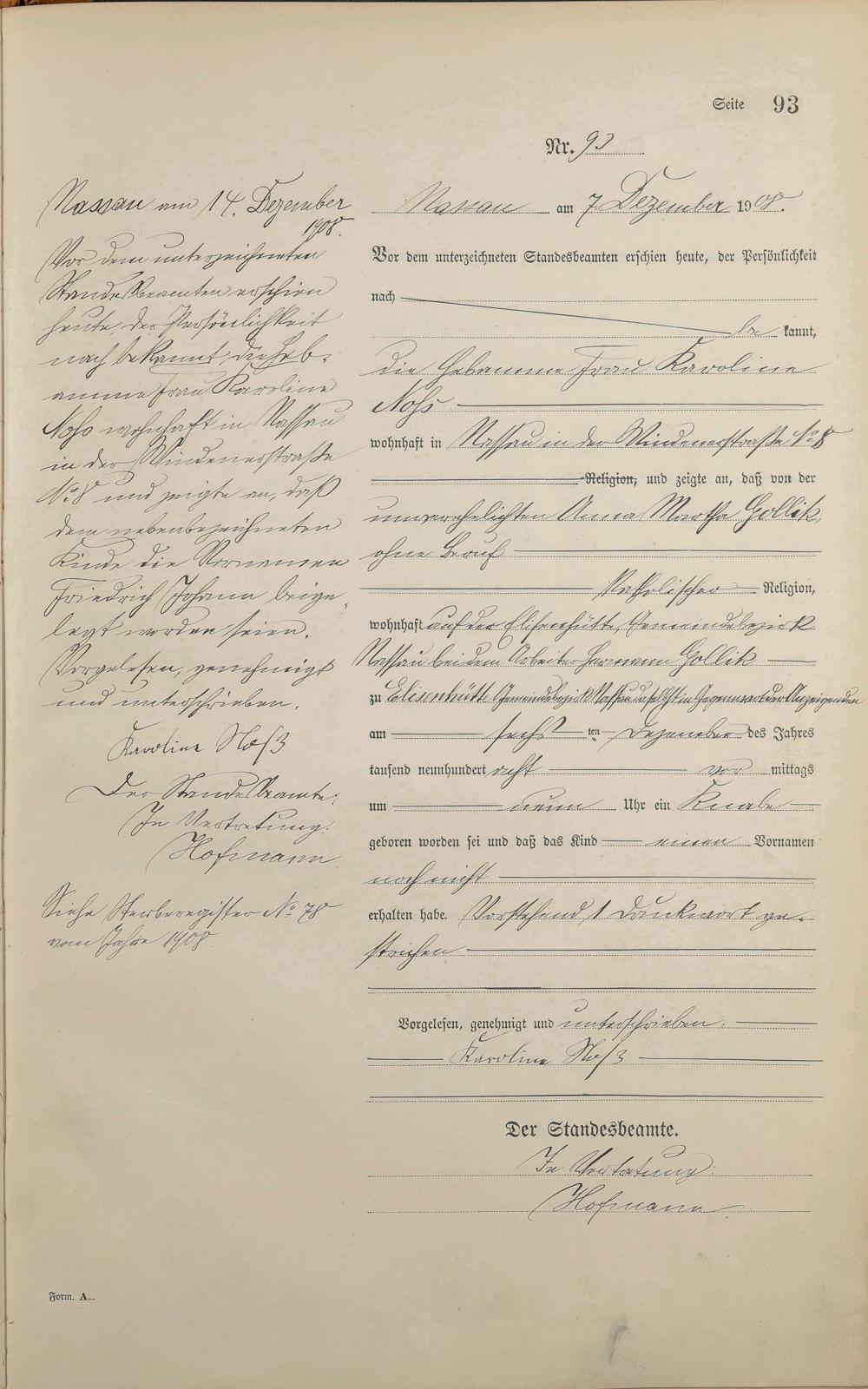 Geburtsregister 1908