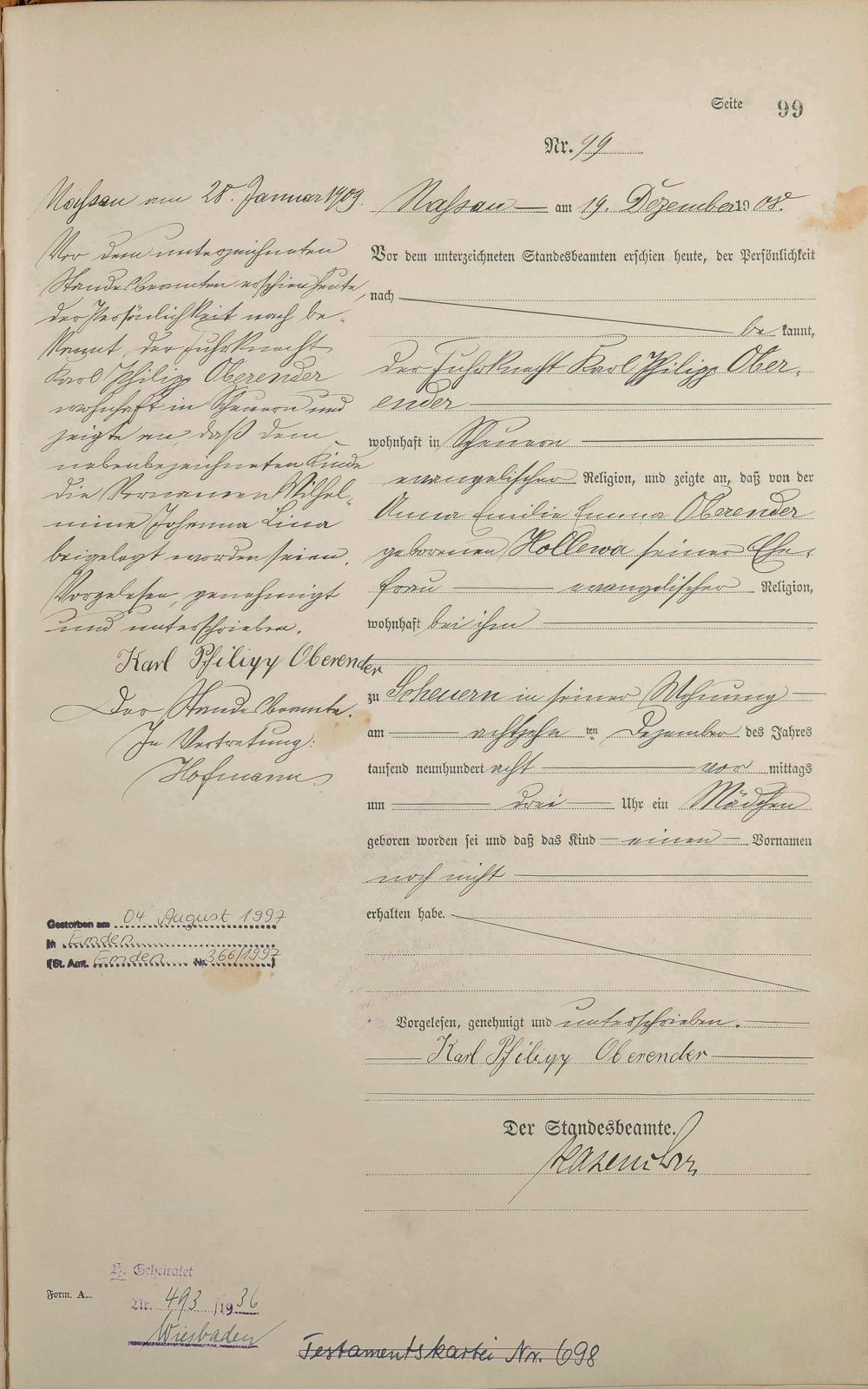 Geburtsregister 1908