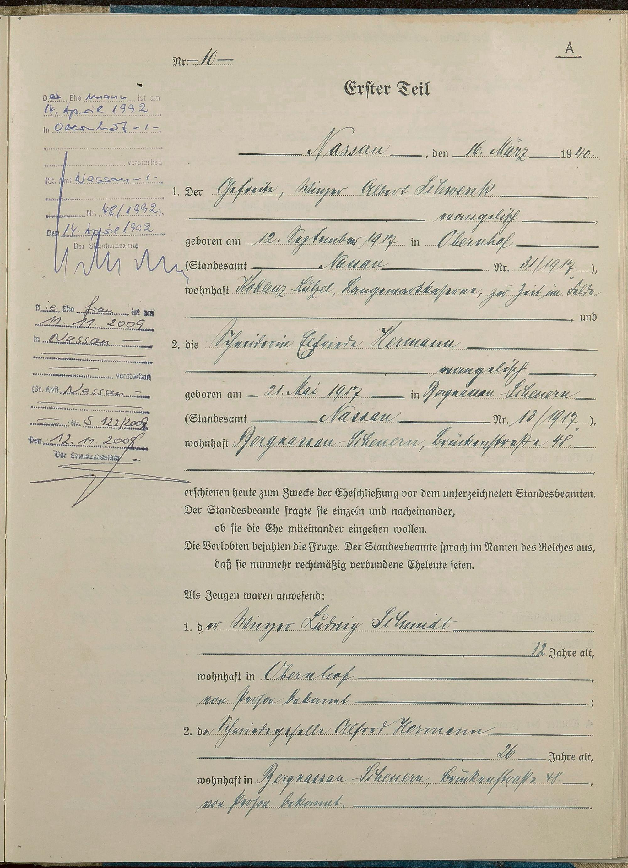 Heiratsregister 1940