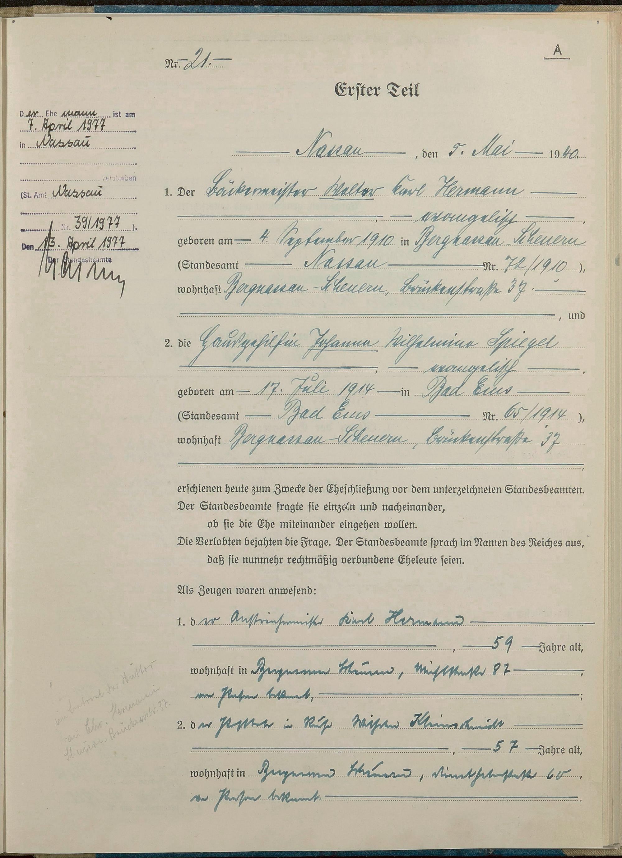 Heiratsregister 1940