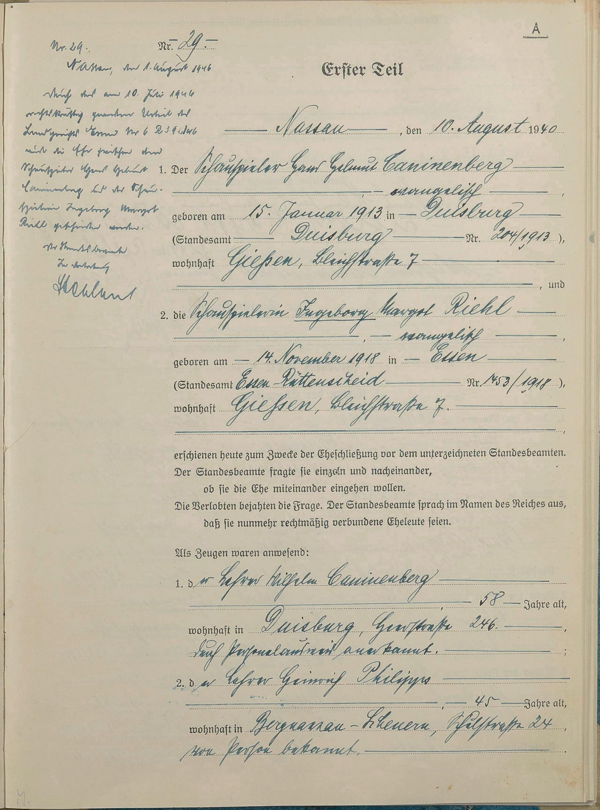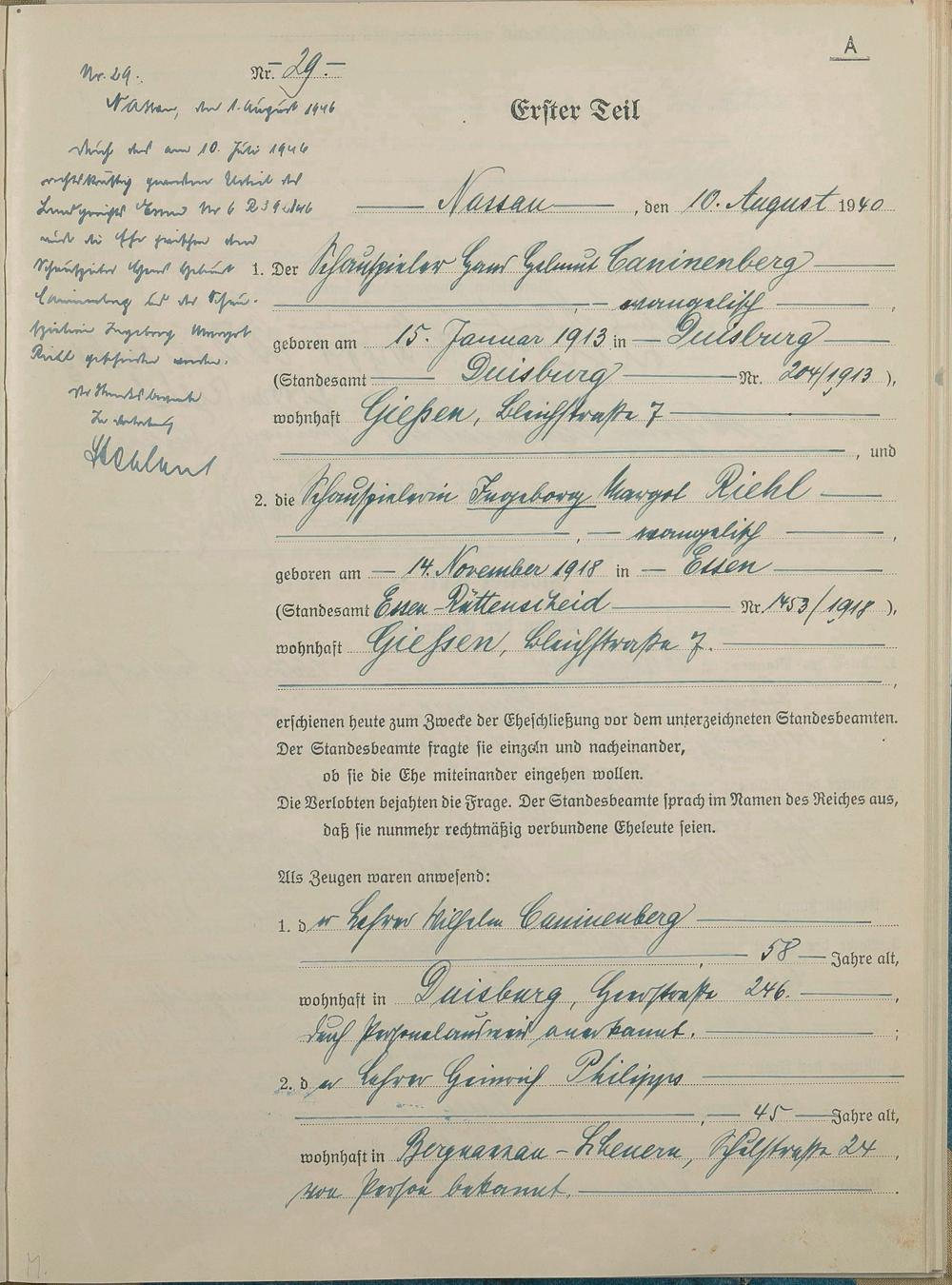 Heiratsregister 1940