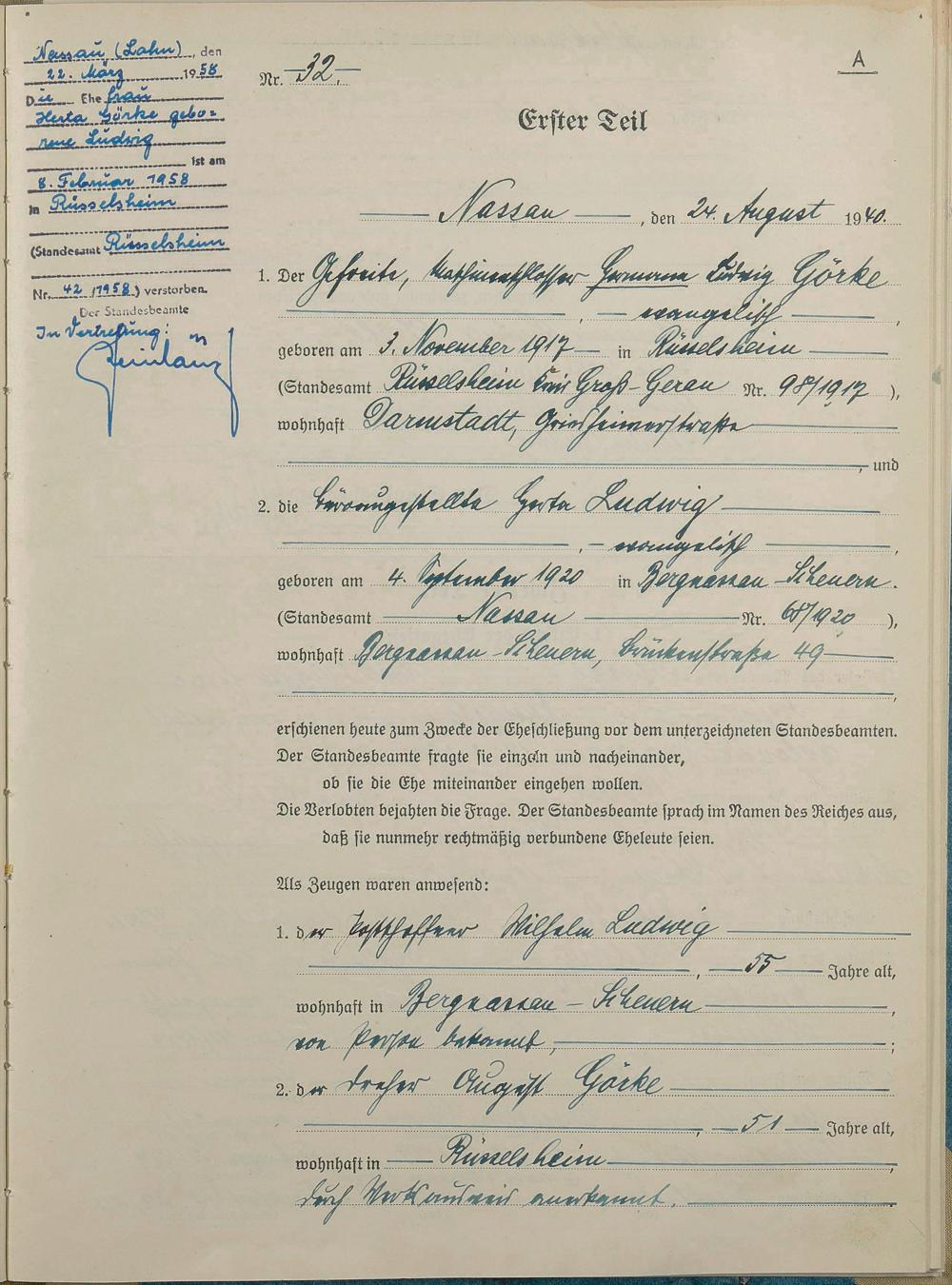 Heiratsregister 1940