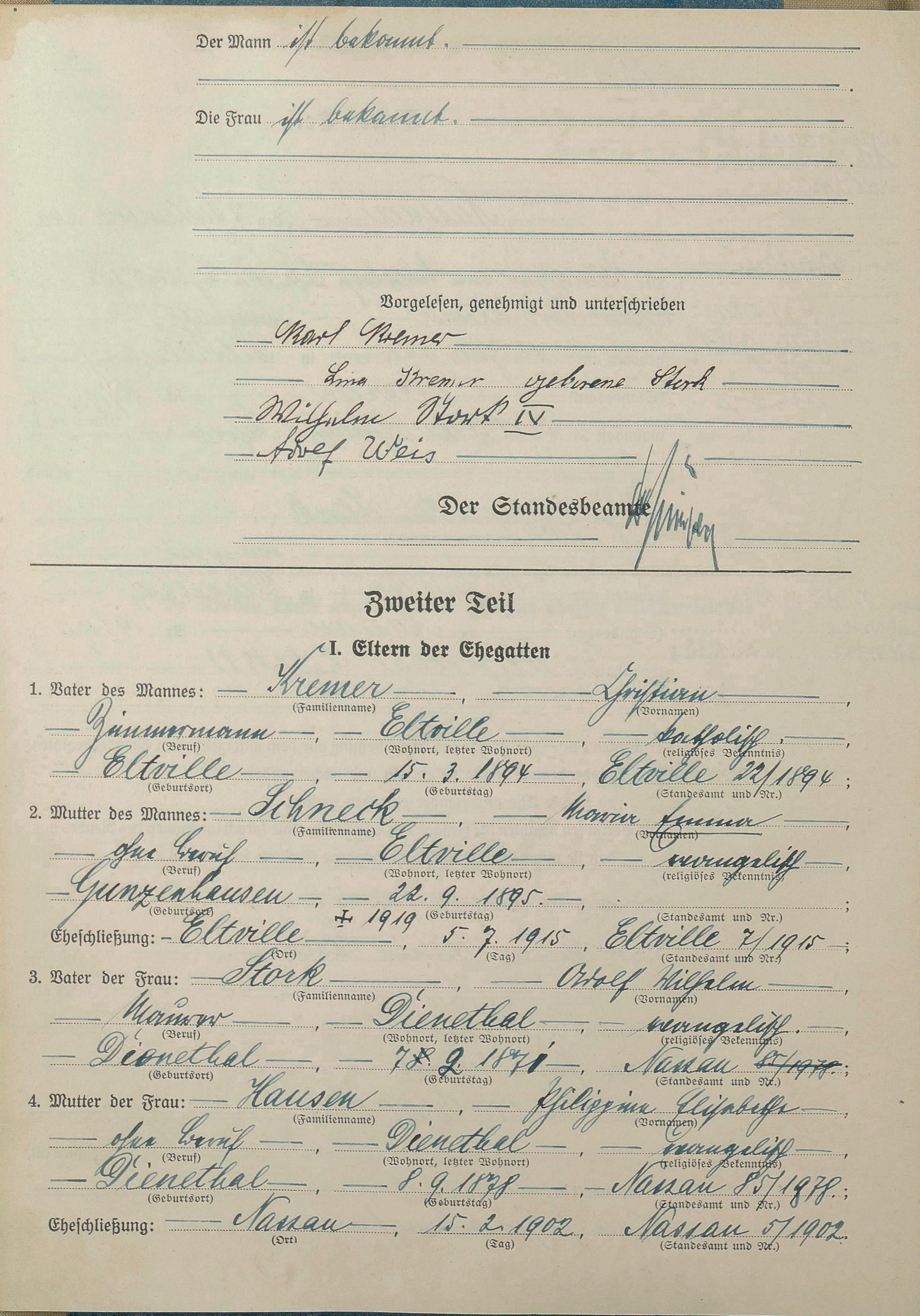Heiratsregister 1940