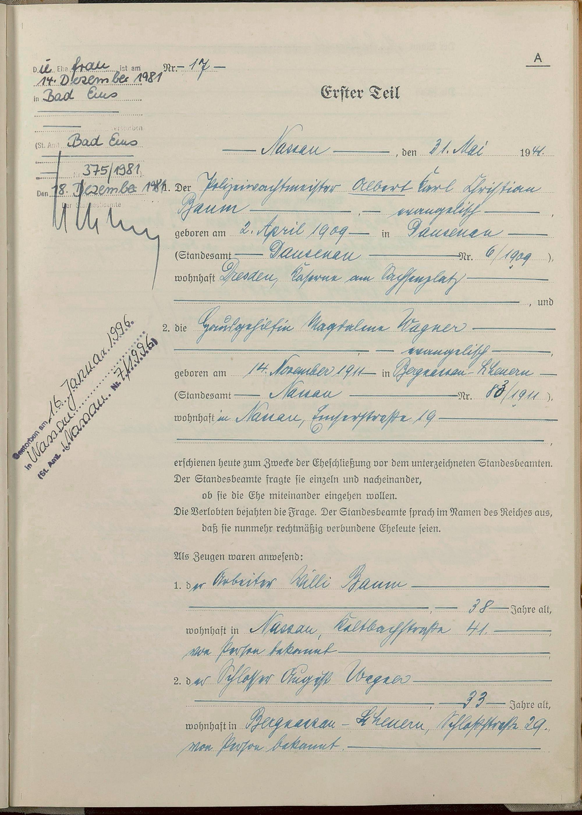 Heiratsregister 1941