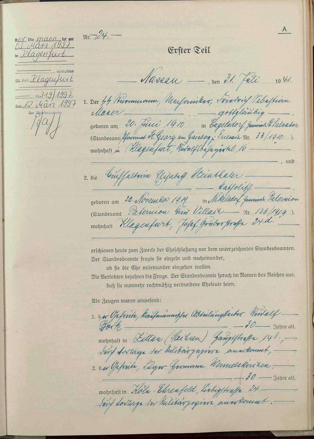 Heiratsregister 1941