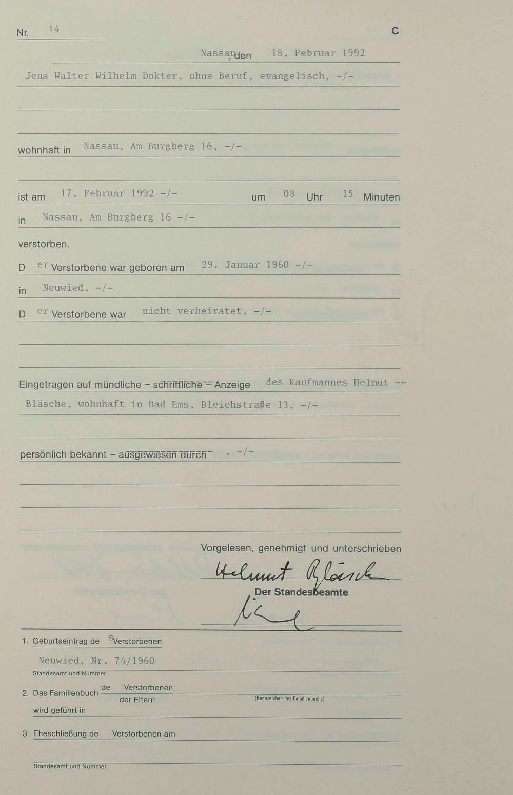 Sterberegister 1992