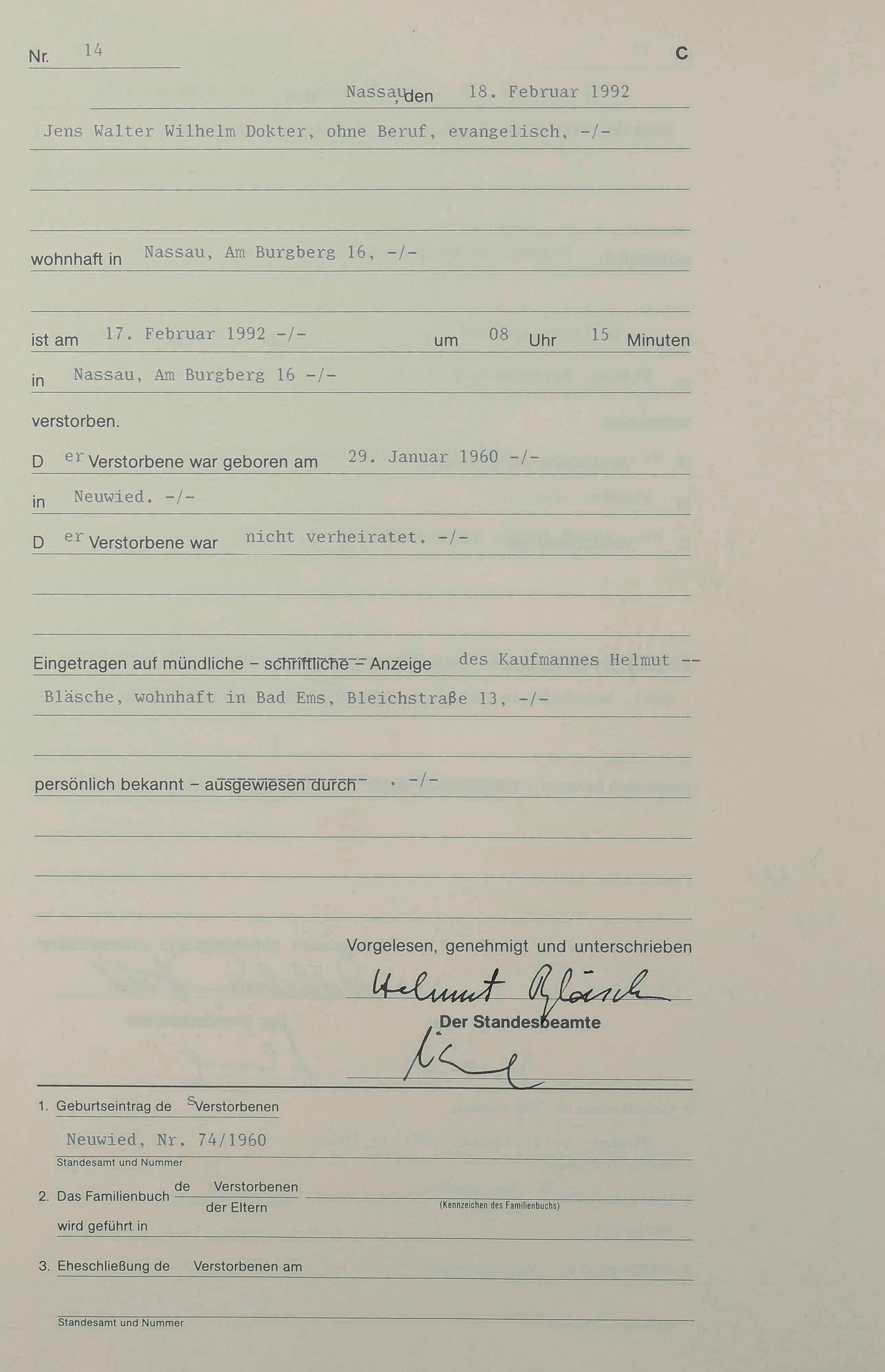 119: Sterberegister 1992