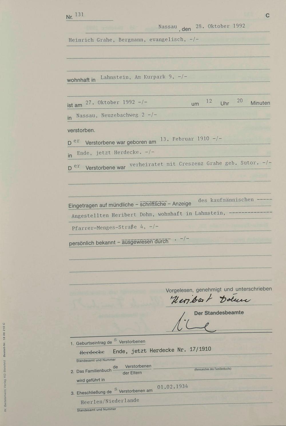 Sterberegister 1992