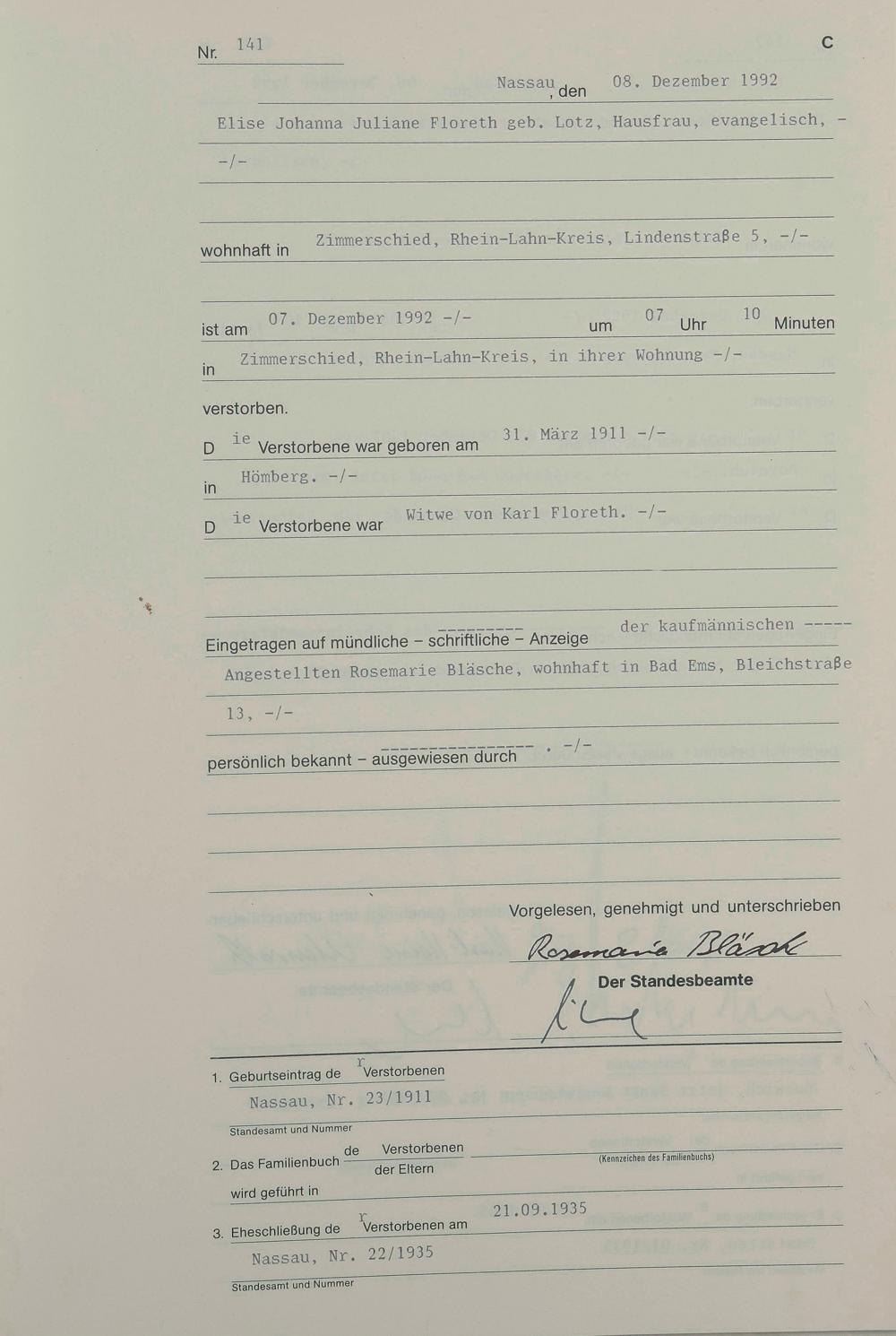 119: Sterberegister 1992