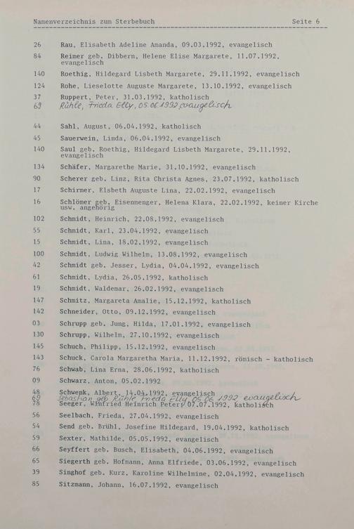 Sterberegister 1992